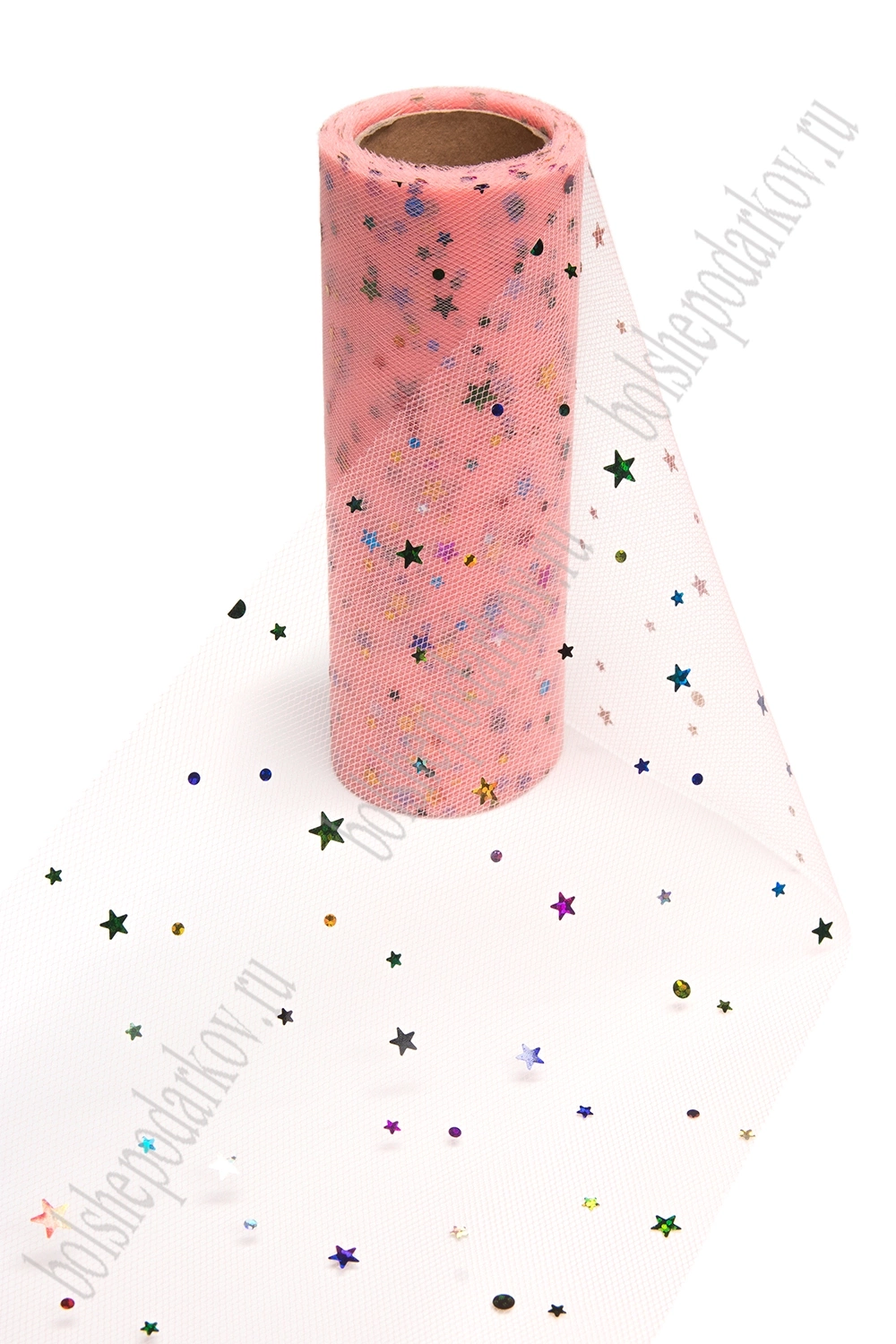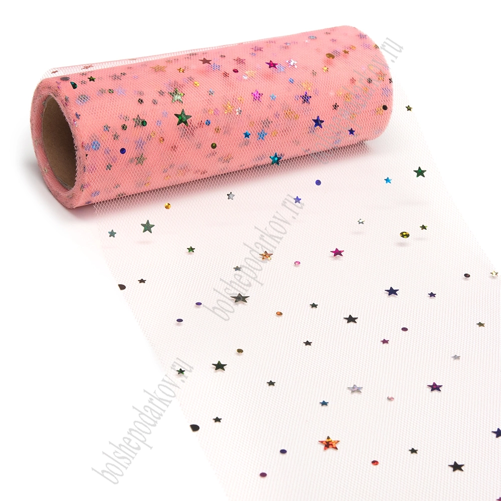 Фатин с пайетками "Звездочки" 15 см*10 ярд (SF-2945) розовый персик №17