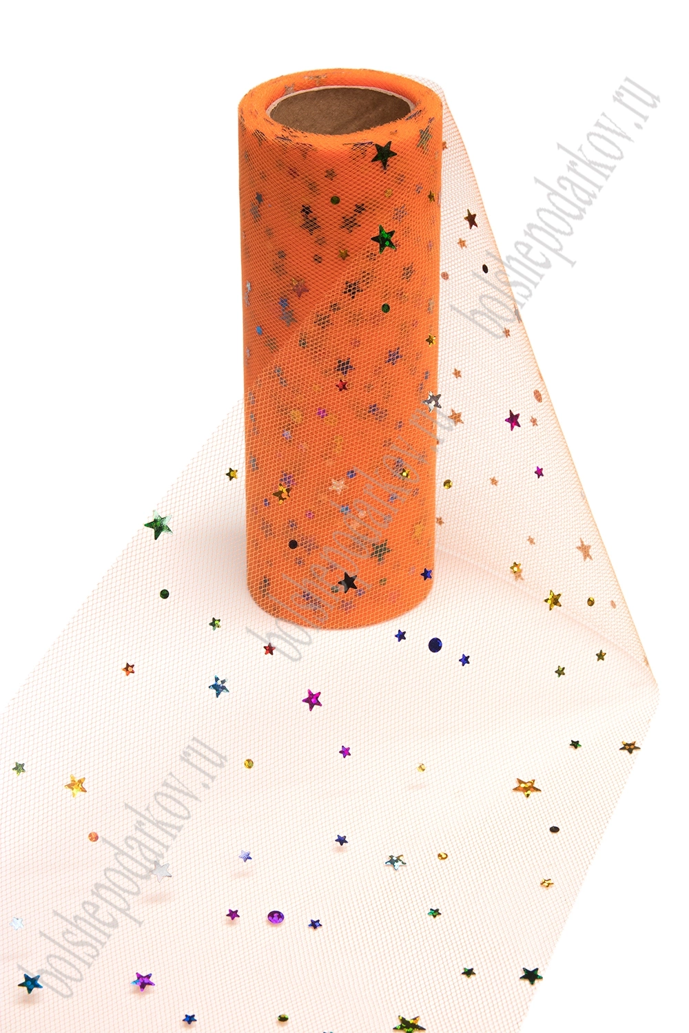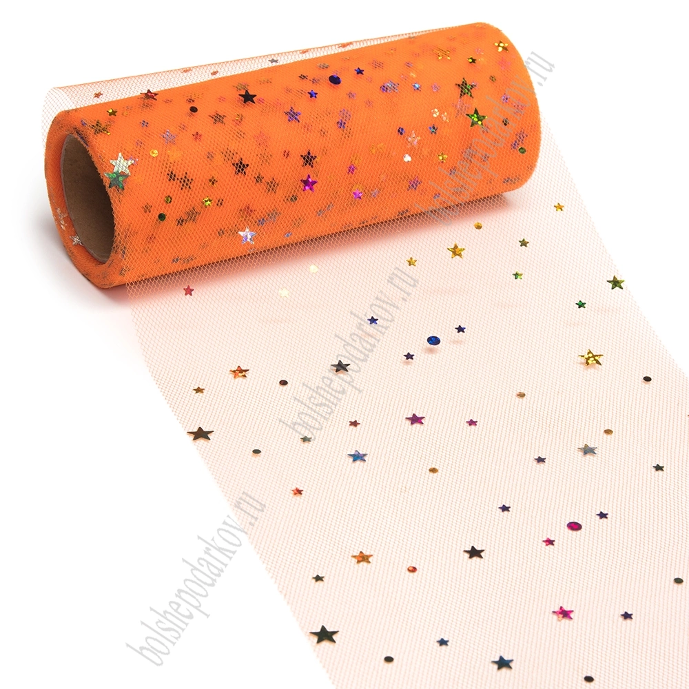 Фатин с пайетками "Звездочки" 15 см*10 ярд (SF-2945) ярко-оранжевый №25