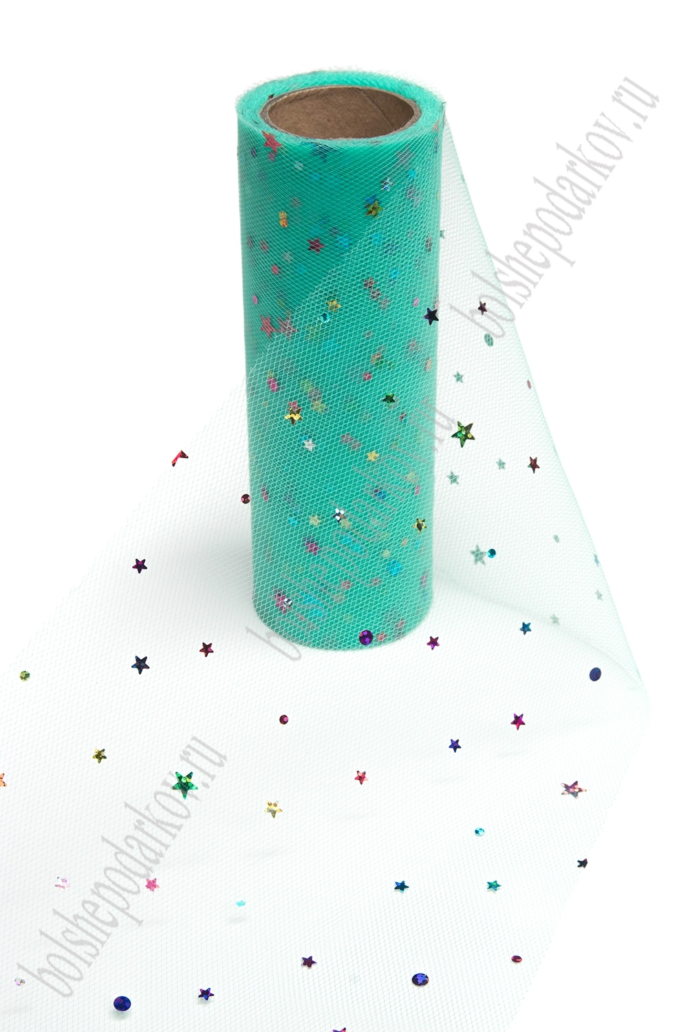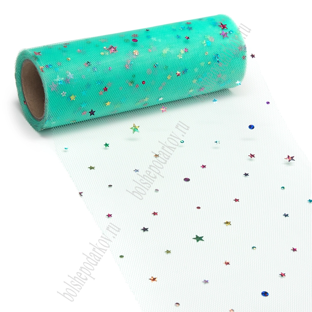 Фатин с пайетками "Звездочки" 15 см*10 ярд (SF-2945) аквамариновый №18