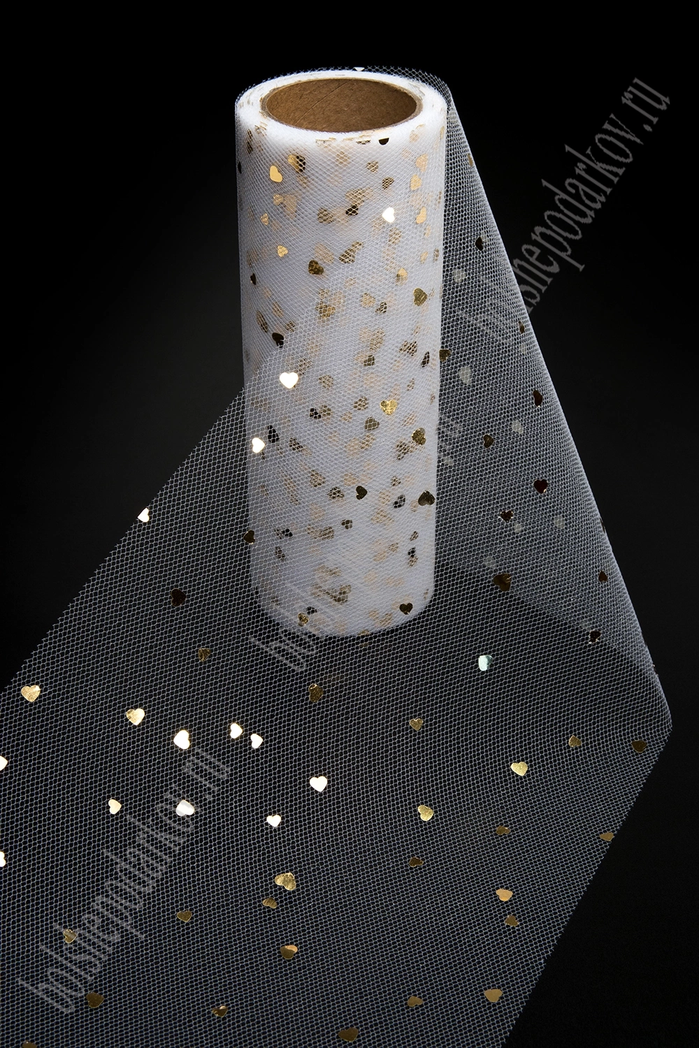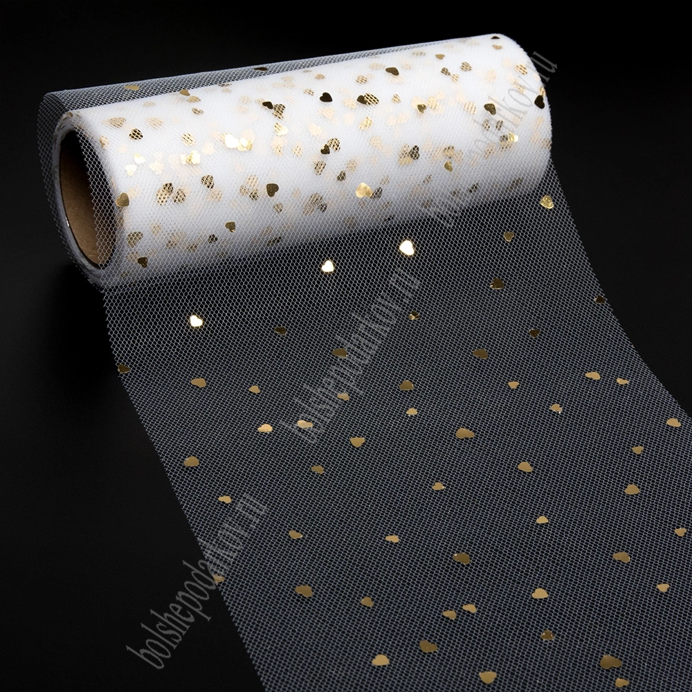Фатин с пайетками "Сердечки" 15 см*10 ярд (SF-2948) белый