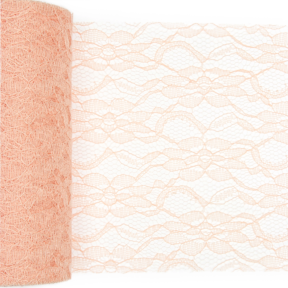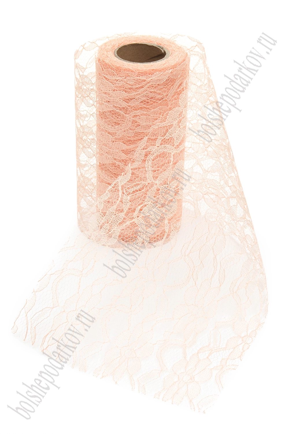 Фатин с узором "Цветы" 15 см*10 ярд (SF-2940) персиковый
