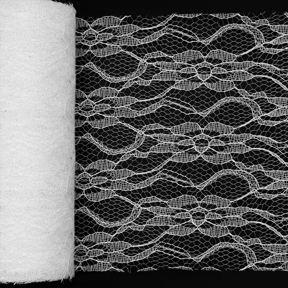Фатин с узором "Цветы" 15 см*10 ярд (SF-2940) белый №5