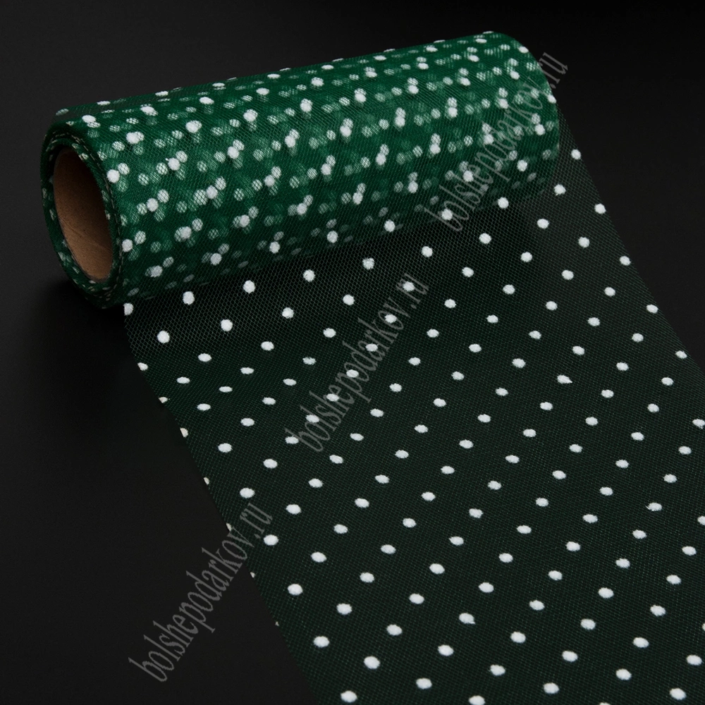 Фатин в горошек 15 см*10 ярд (SF-2941) темно-зеленый №19
