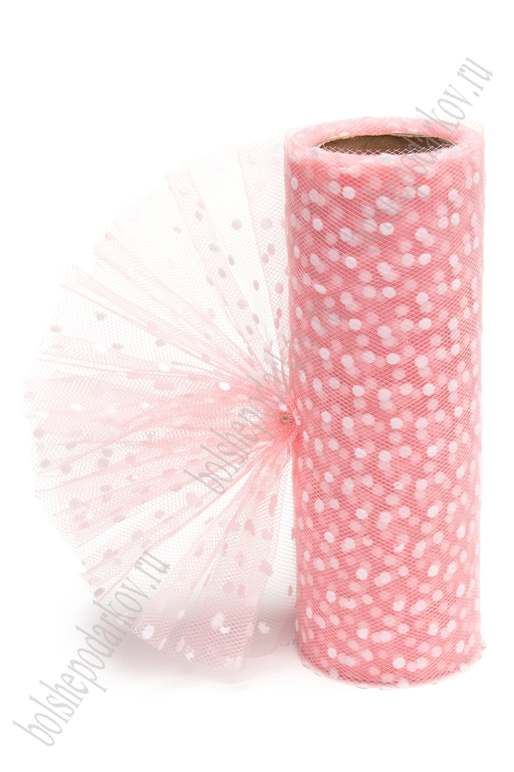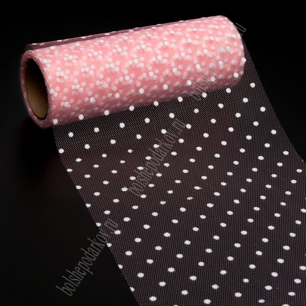 Фатин в горошек 15 см*10 ярд (SF-2941) розовый персик №17