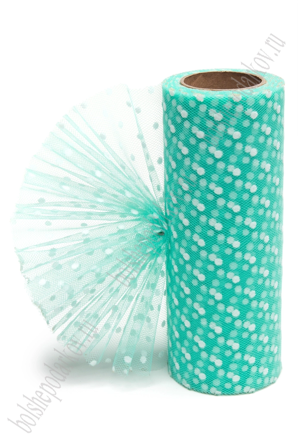Фатин в горошек 15 см*10 ярд (SF-2941) аквамариновый №18