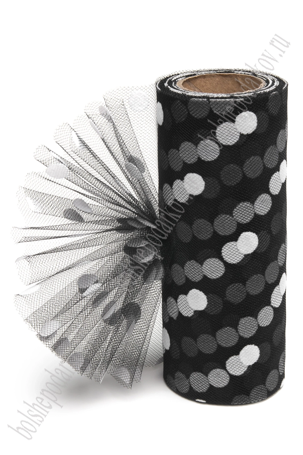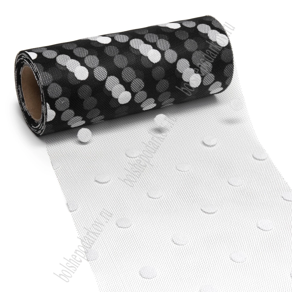 Фатин "Крупный горох" 15 см*15 ярд (SF-3779) черный/белый