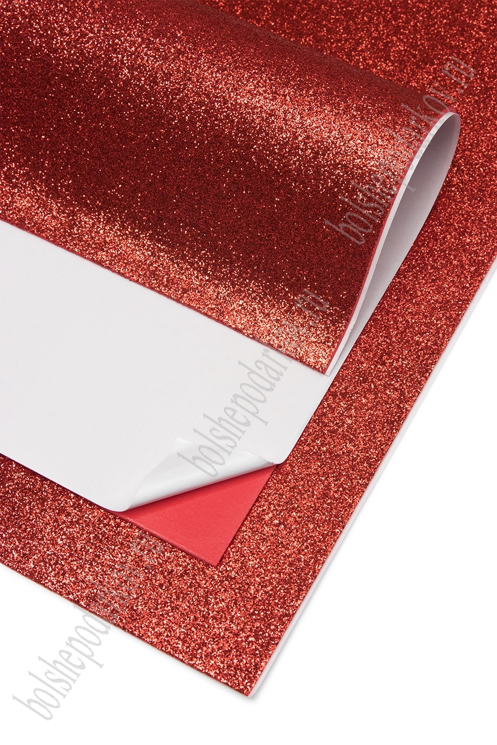 Фоамиран глиттерный самоклеющ. А4 (10 листов) SF-1957, красный №001