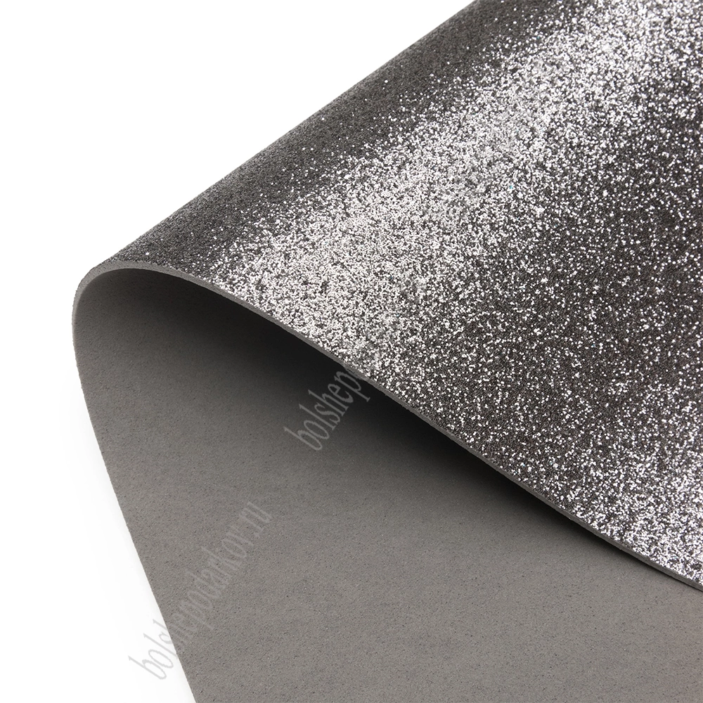 Фоамиран глиттерный А4, 2 мм Premium (10 листов) SF-1955, черное серебро №2023
