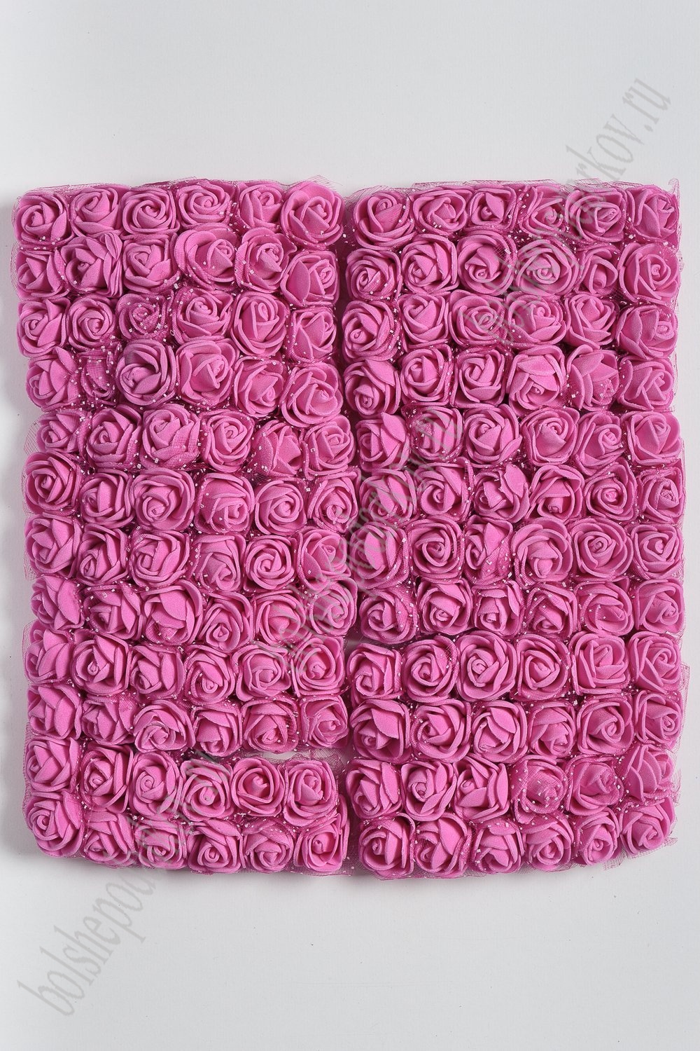Головки цветков "Розочка" на веточке с сеточкой, 144 шт (SF-043), фукси №19