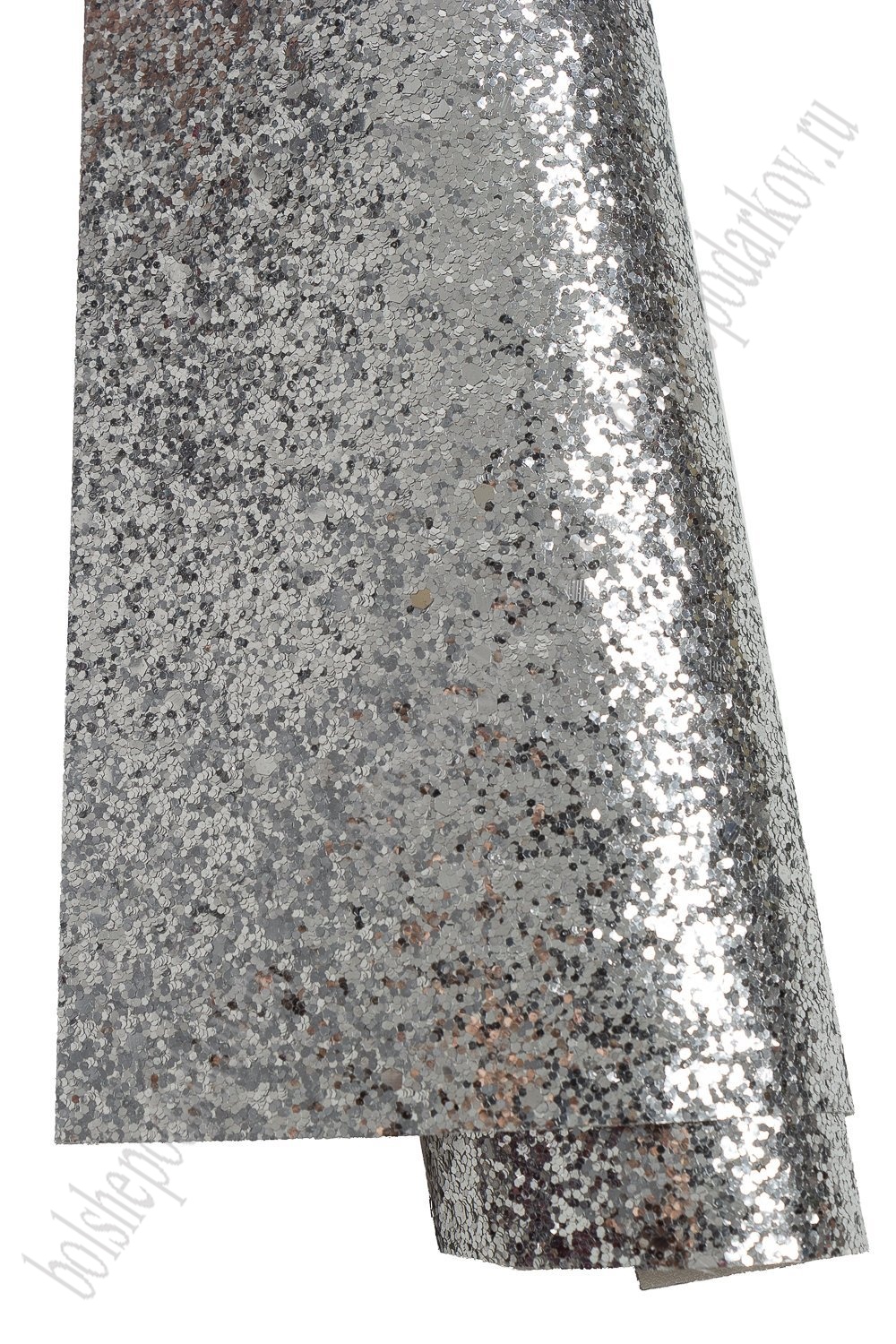 Кожзам с крупными блестками А4 (5 листов) SF-3933, серебро №2