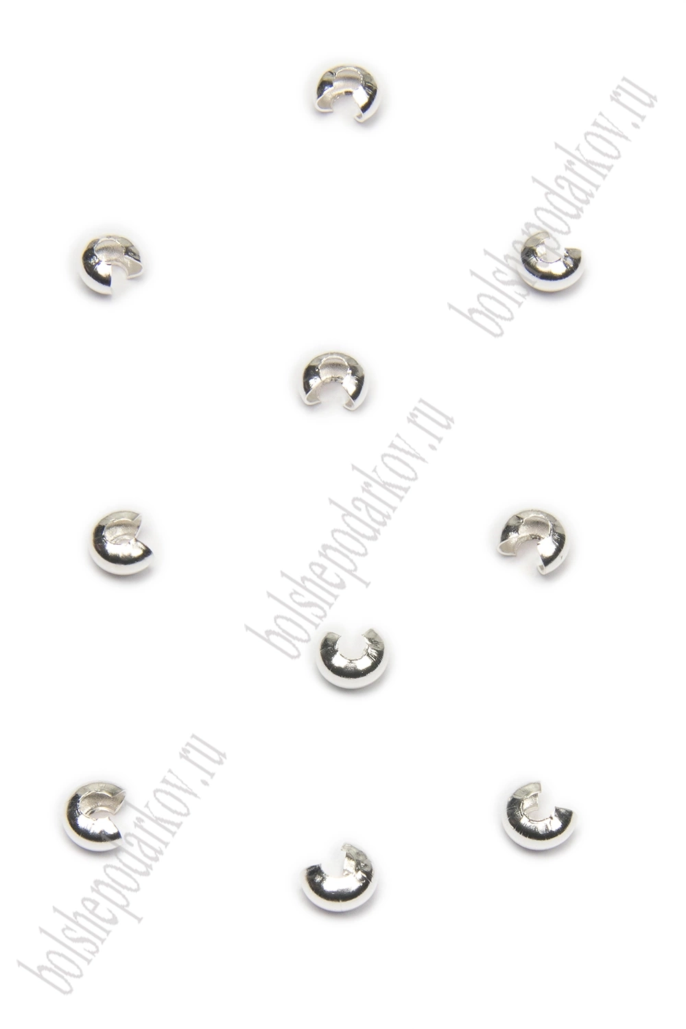 Кримп для бижутерии (обжимная бусина) 3*4 мм (50 шт) SF-7304, серебро