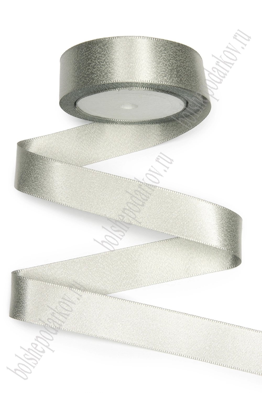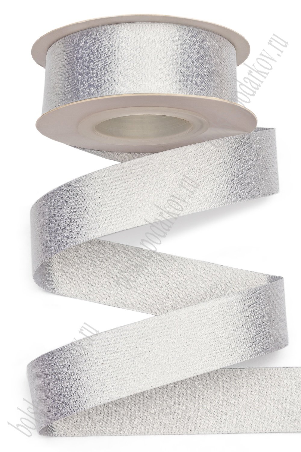 Лента атласная двусторонняя с люрексом 2,5 см*10 ярд (SF-7311) серебро №029/серебро