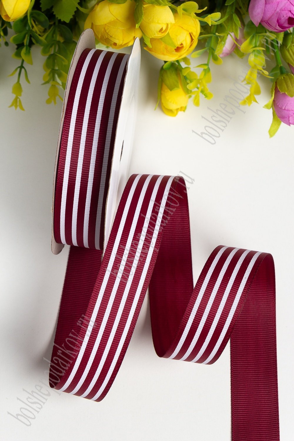 Лента репсовая 2,5 см*20 ярд "Полоска" SF-1312, бордовый №48