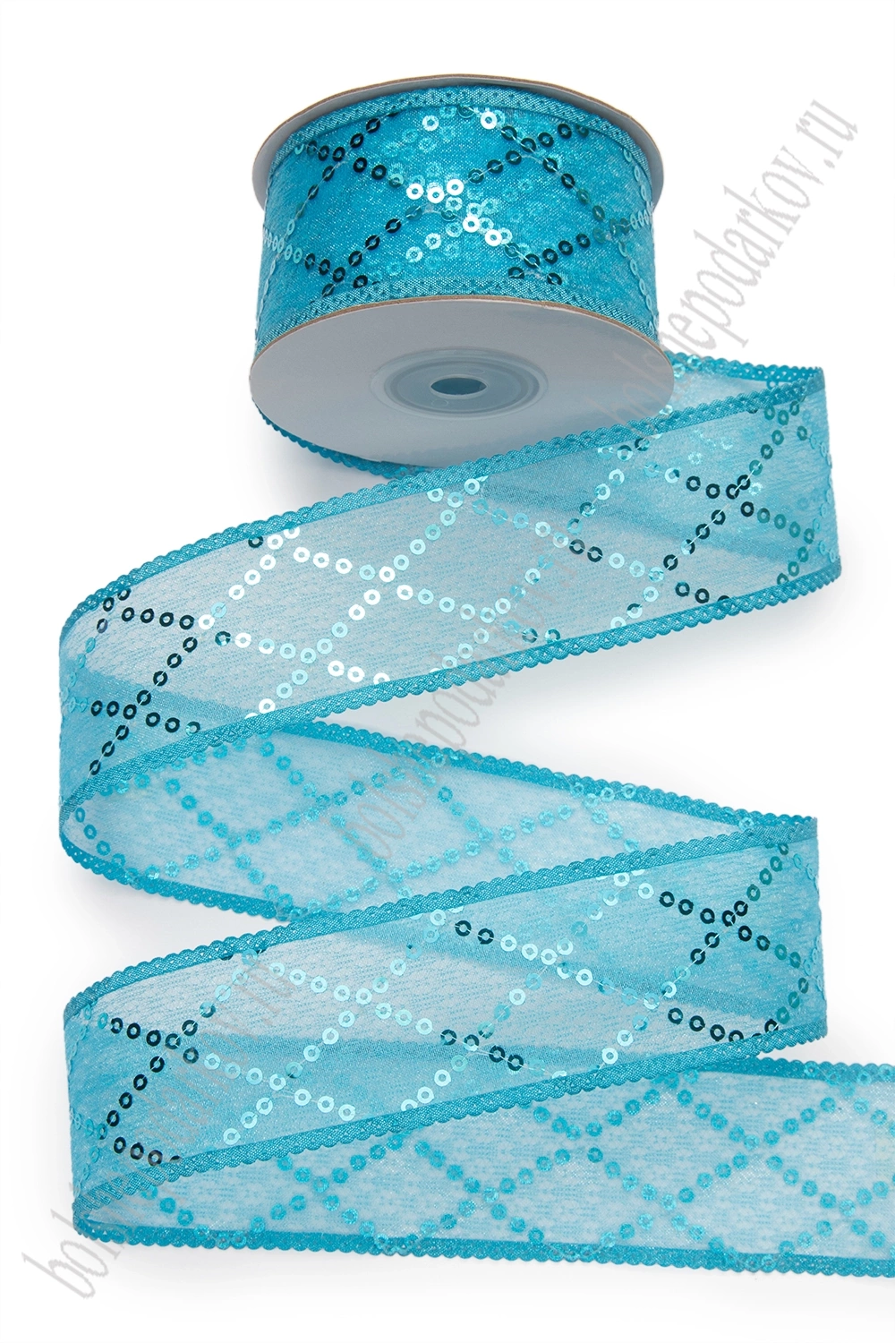 Лента с пайетками 4 см*10 ярд (SF-5753) голубой №07