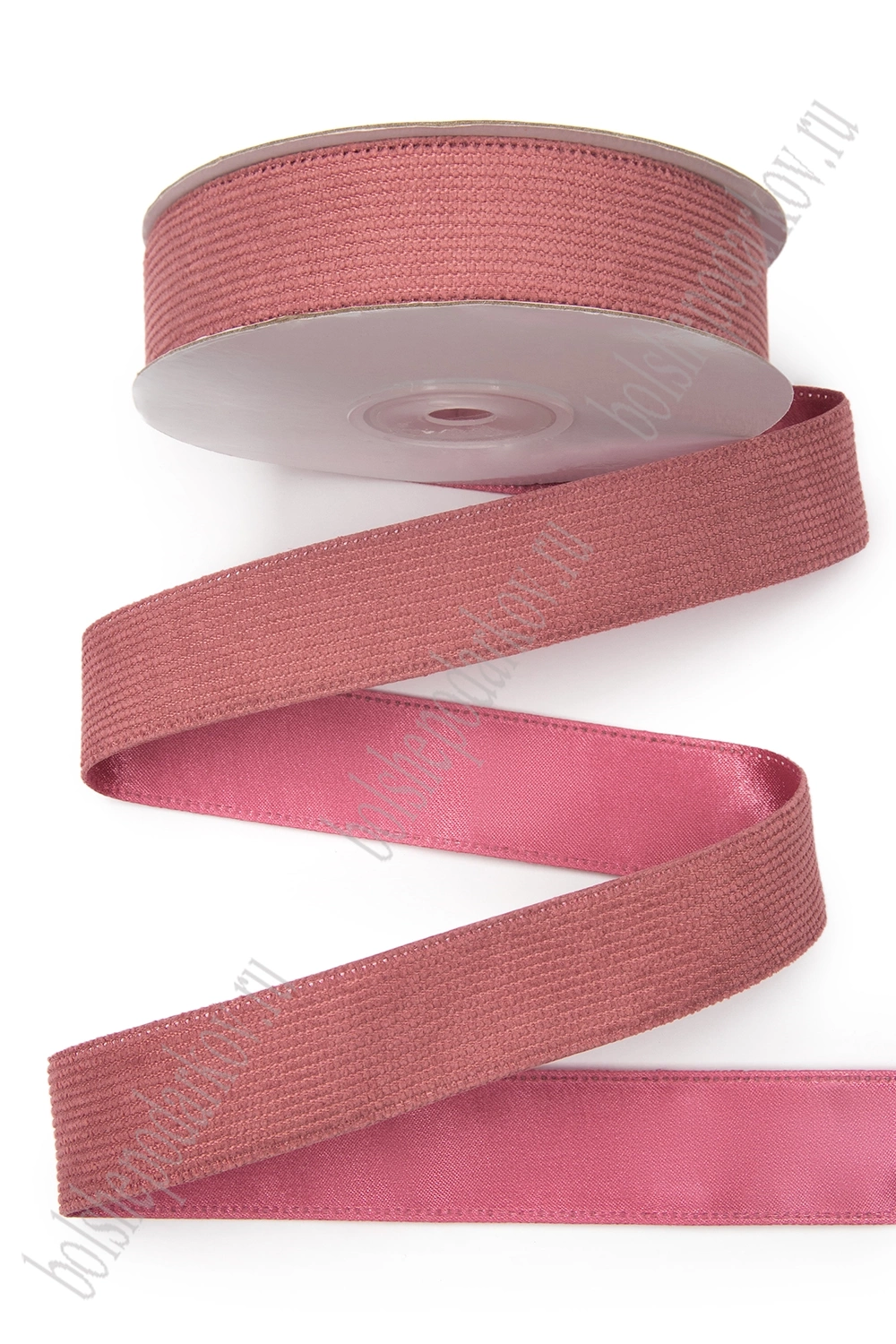 Лента вельвет/атлас 2,5 см*10 ярд (SF-7313) розовая пенка №18