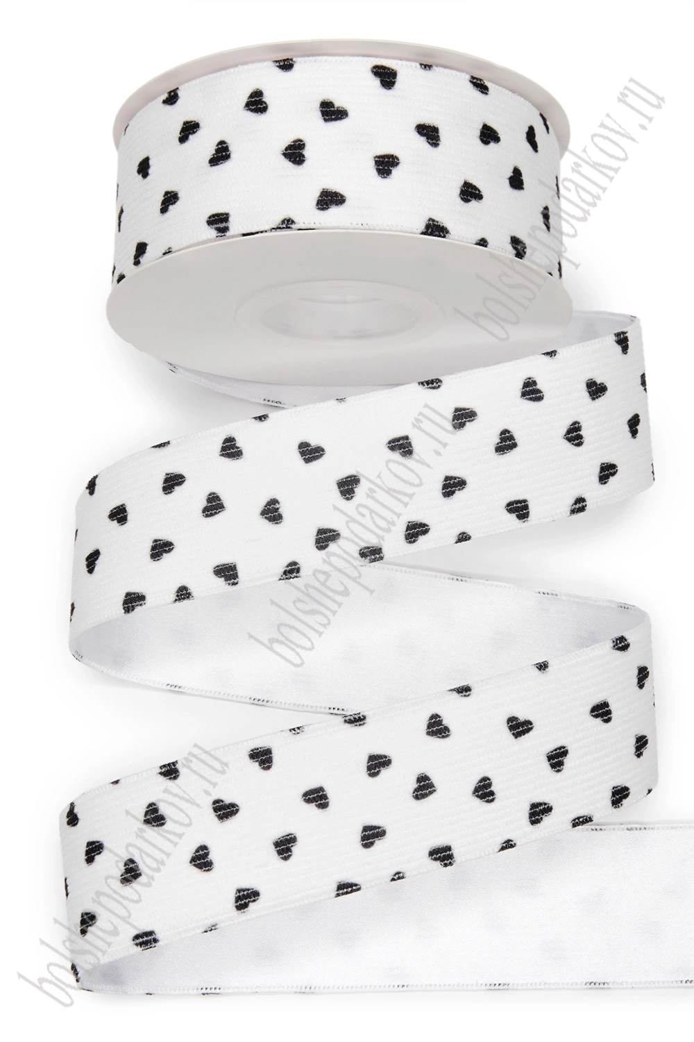 Лента вельвет/атлас "Сердечки" 3,8 см*10 ярд (SF-8058) белый №1