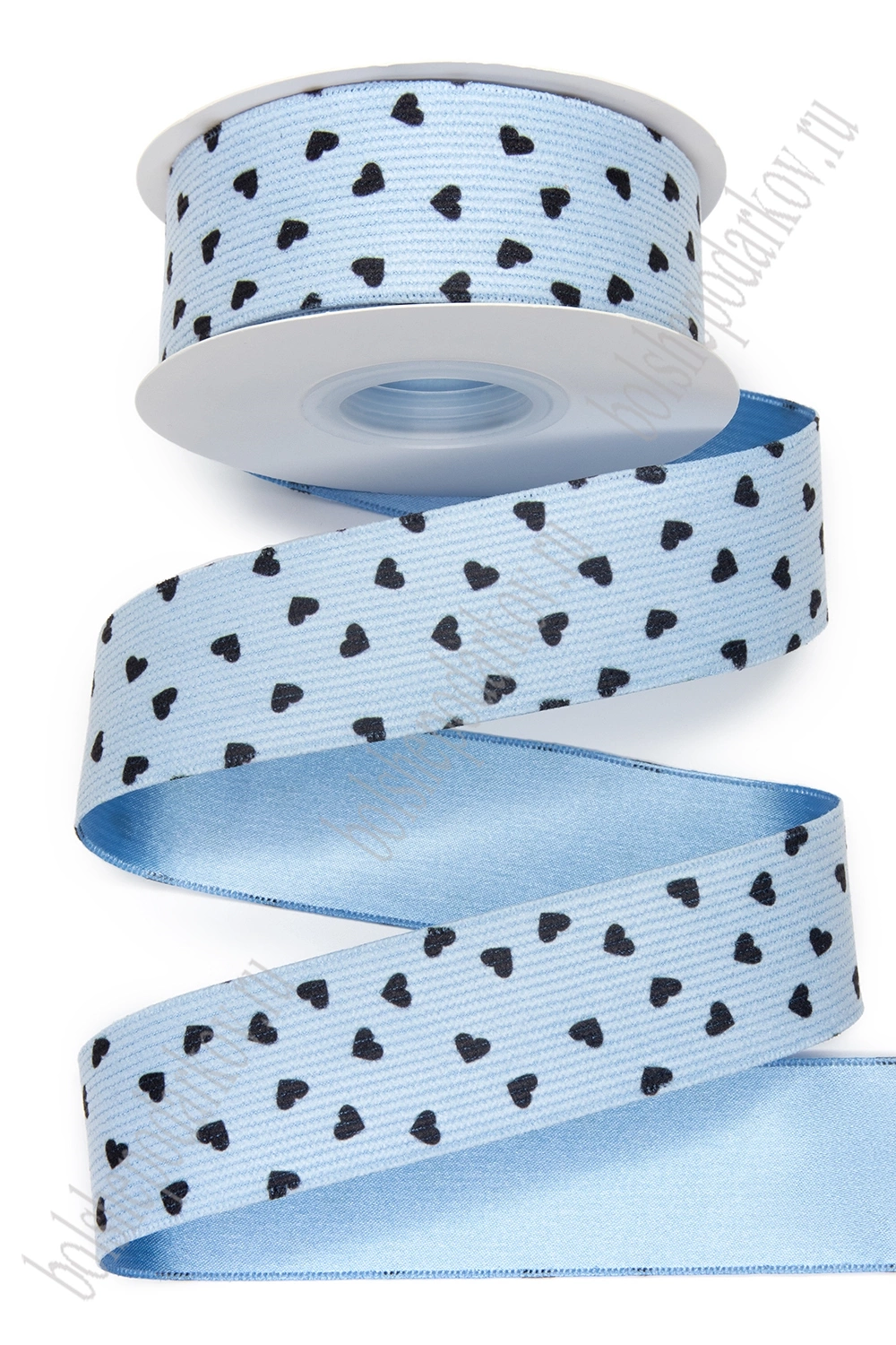 Лента вельвет/атлас "Сердечки" 3,8 см*10 ярд (SF-8058) голубой №8