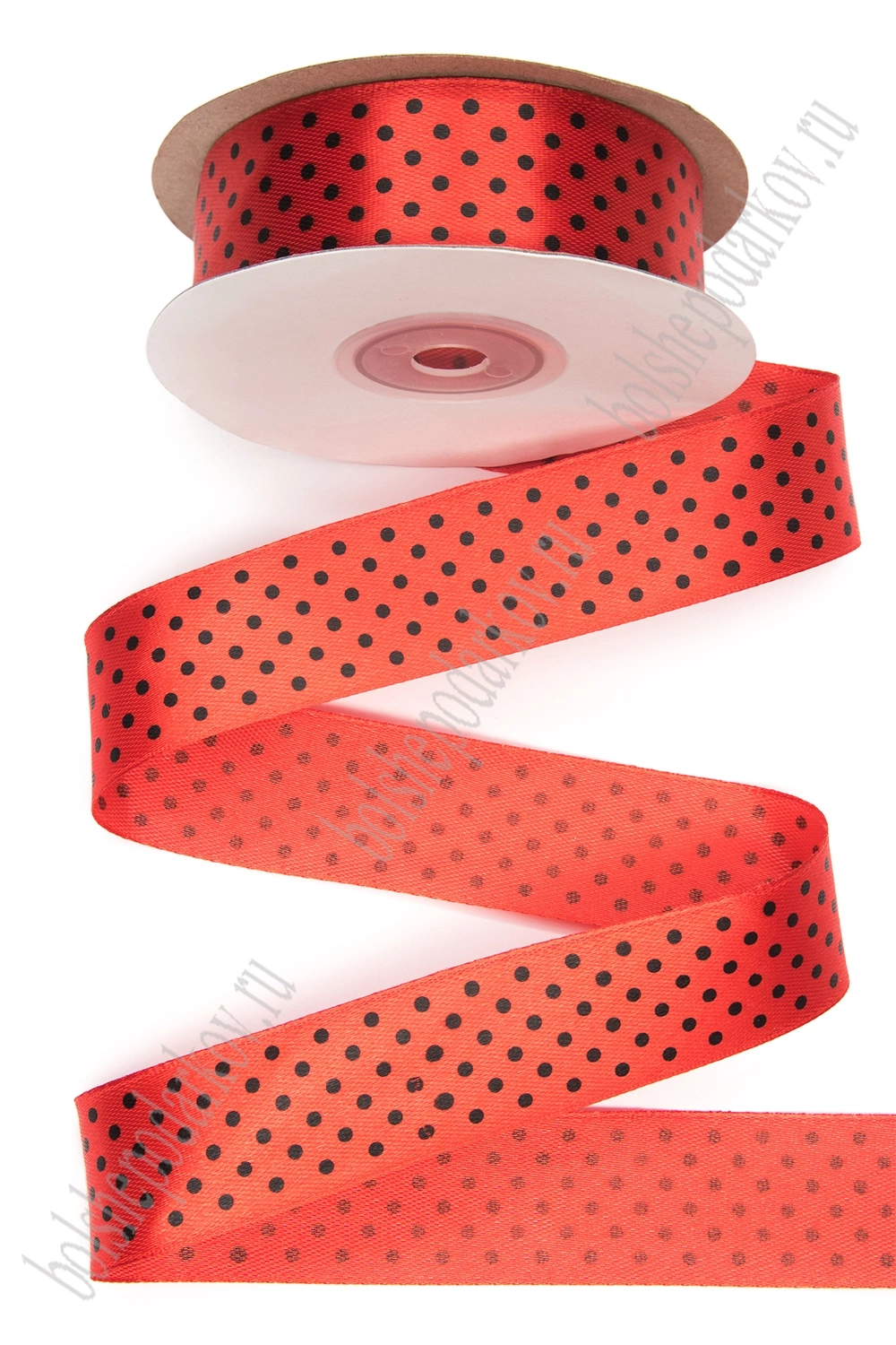 Лента атласная в черный горошек 2,5 см*25 ярд (SF-1782) красный №026