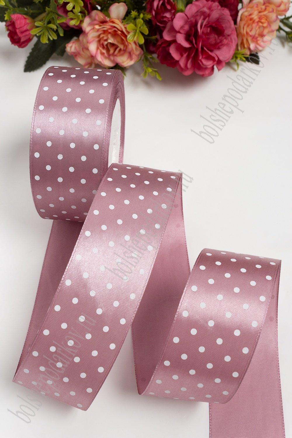 Лента атласная в горошек 4 см*25 ярд (SF-1365) пенка №091/2