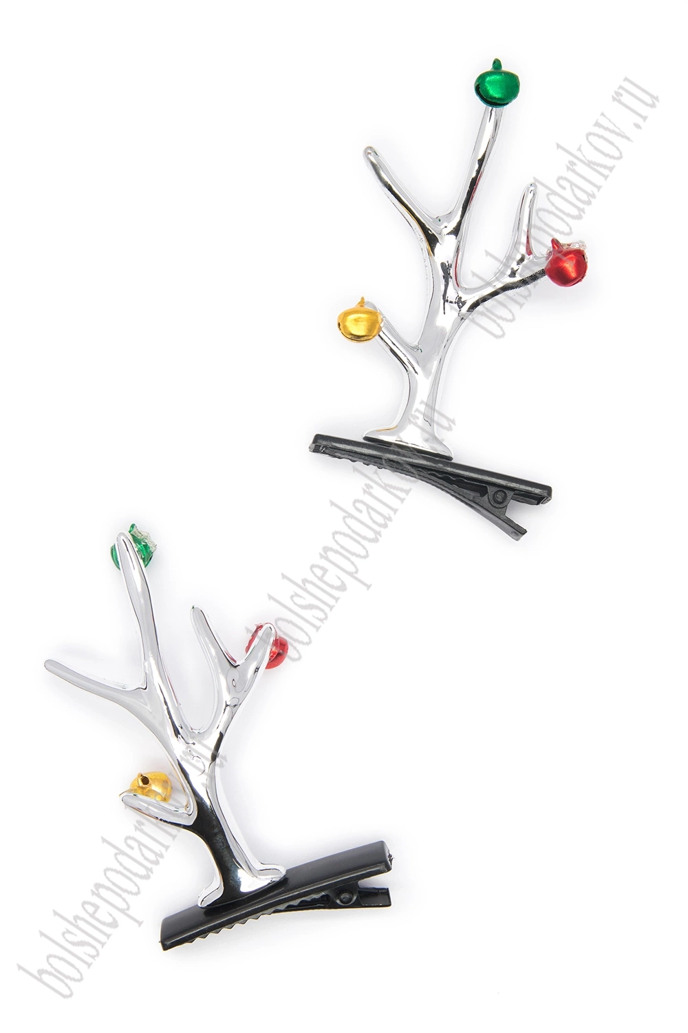 Новогодние заколки "Рожки" (1 пара) SF-7562, серебро №9