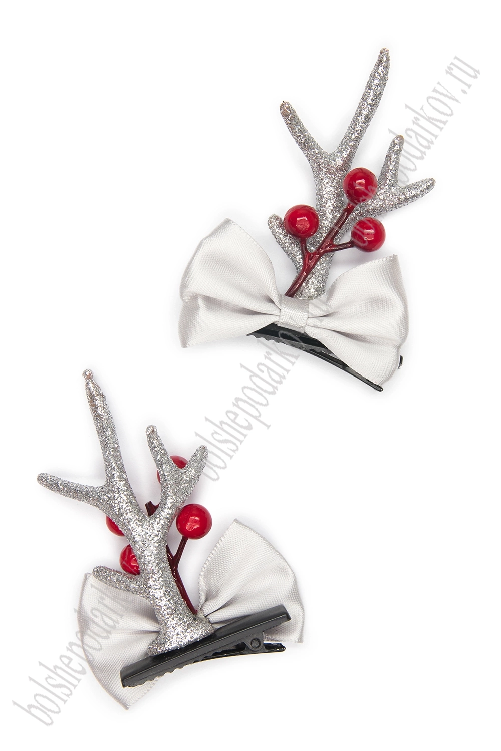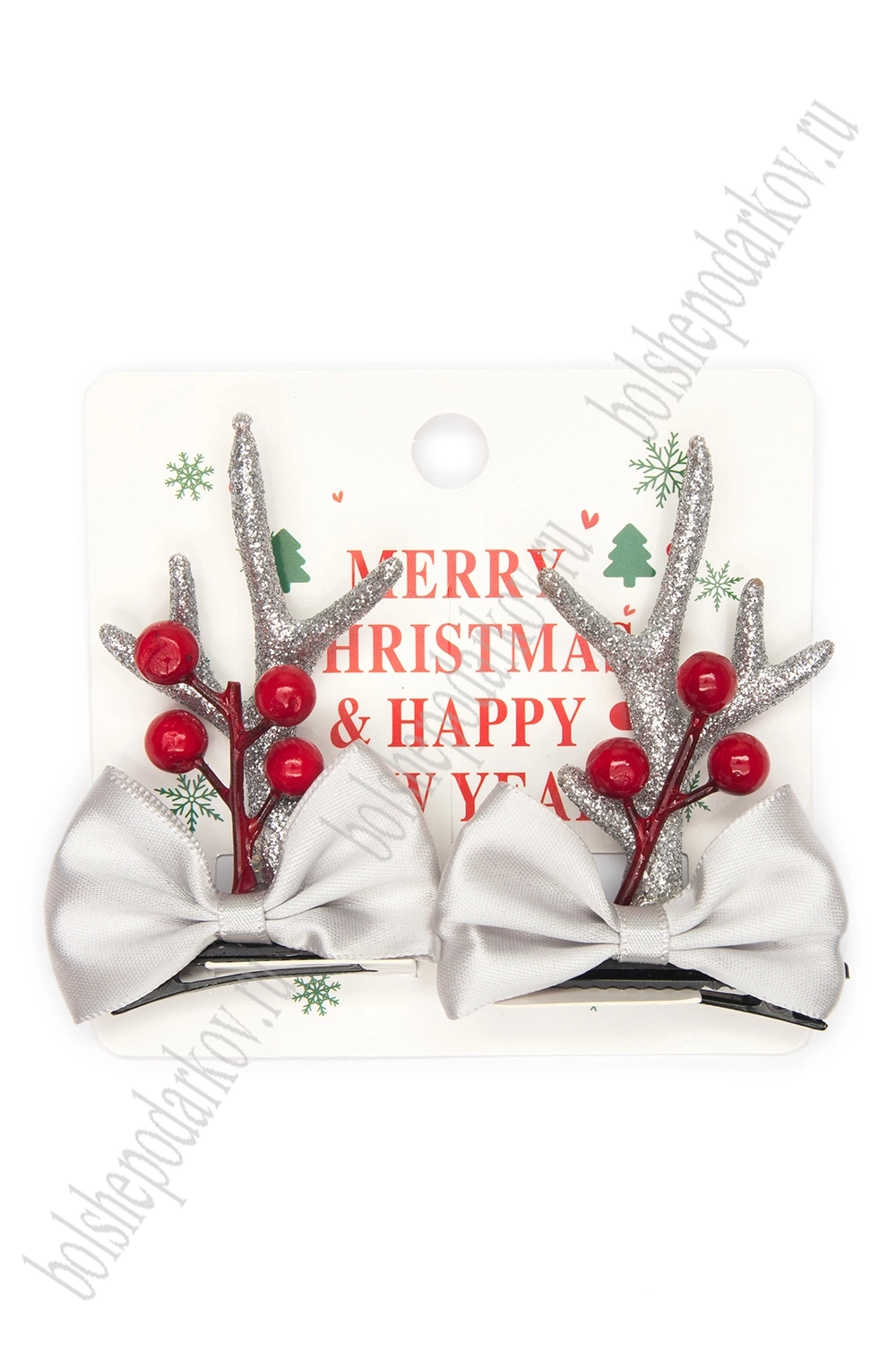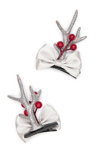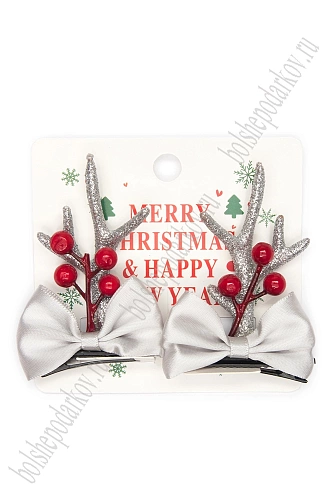 Новогодние заколки "Рожки" (1 пара) SF-7562, серебро №13