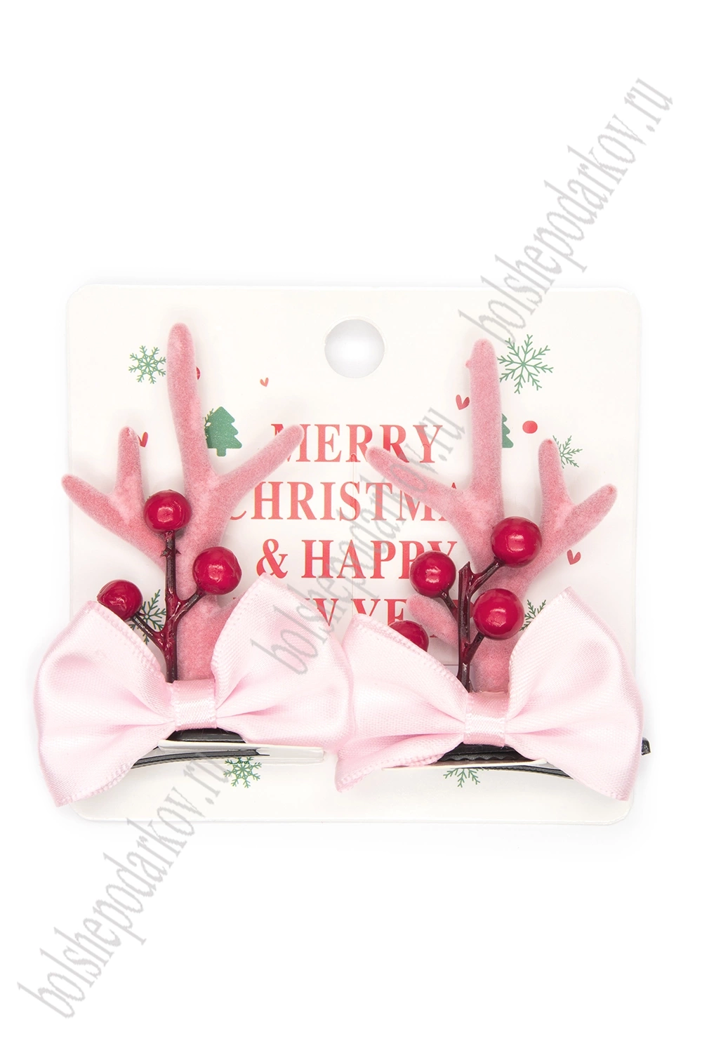Новогодние заколки "Рожки" (1 пара) SF-7562, светло-розовый №14