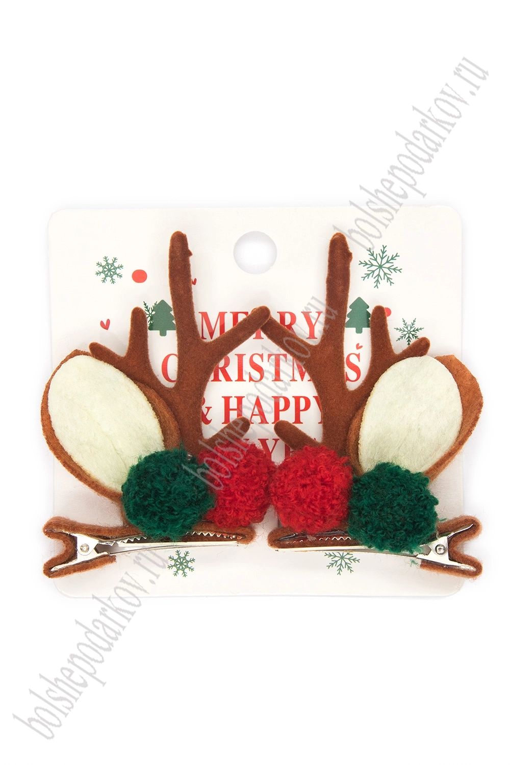 Новогодние заколки "Рожки" (1 пара) SF-7562, коричневый №17