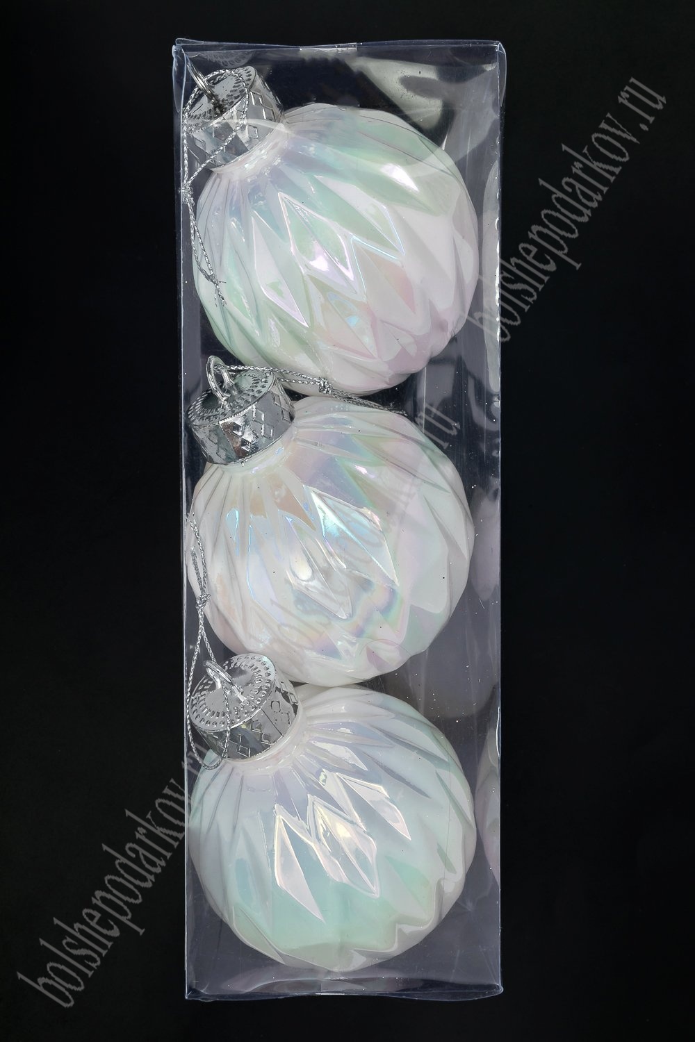 Набор новогодних шаров 8 см (3 шт) SF-7805, белый №1