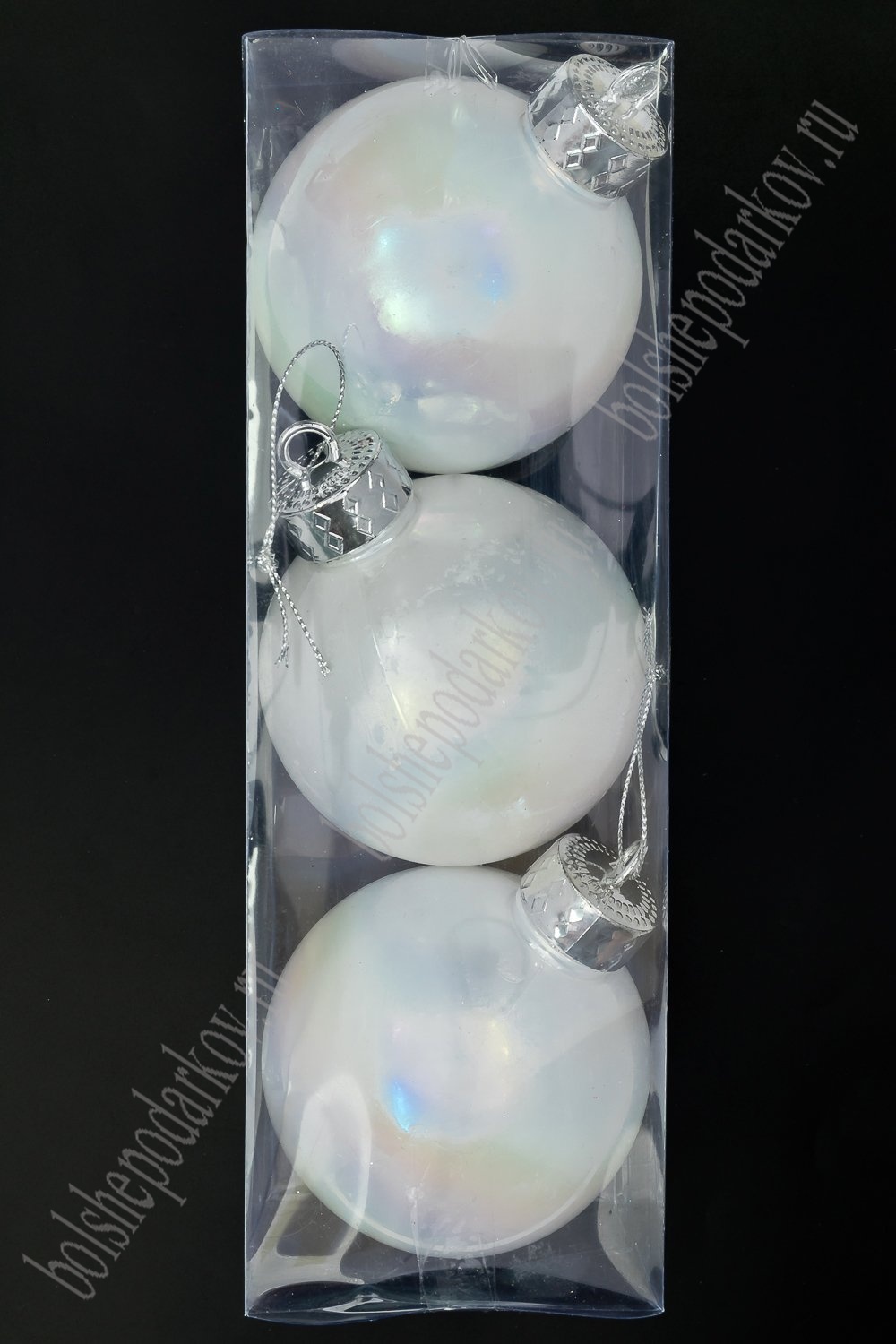 Набор новогодних шаров 8 см (3 шт) SF-7805, белый №3