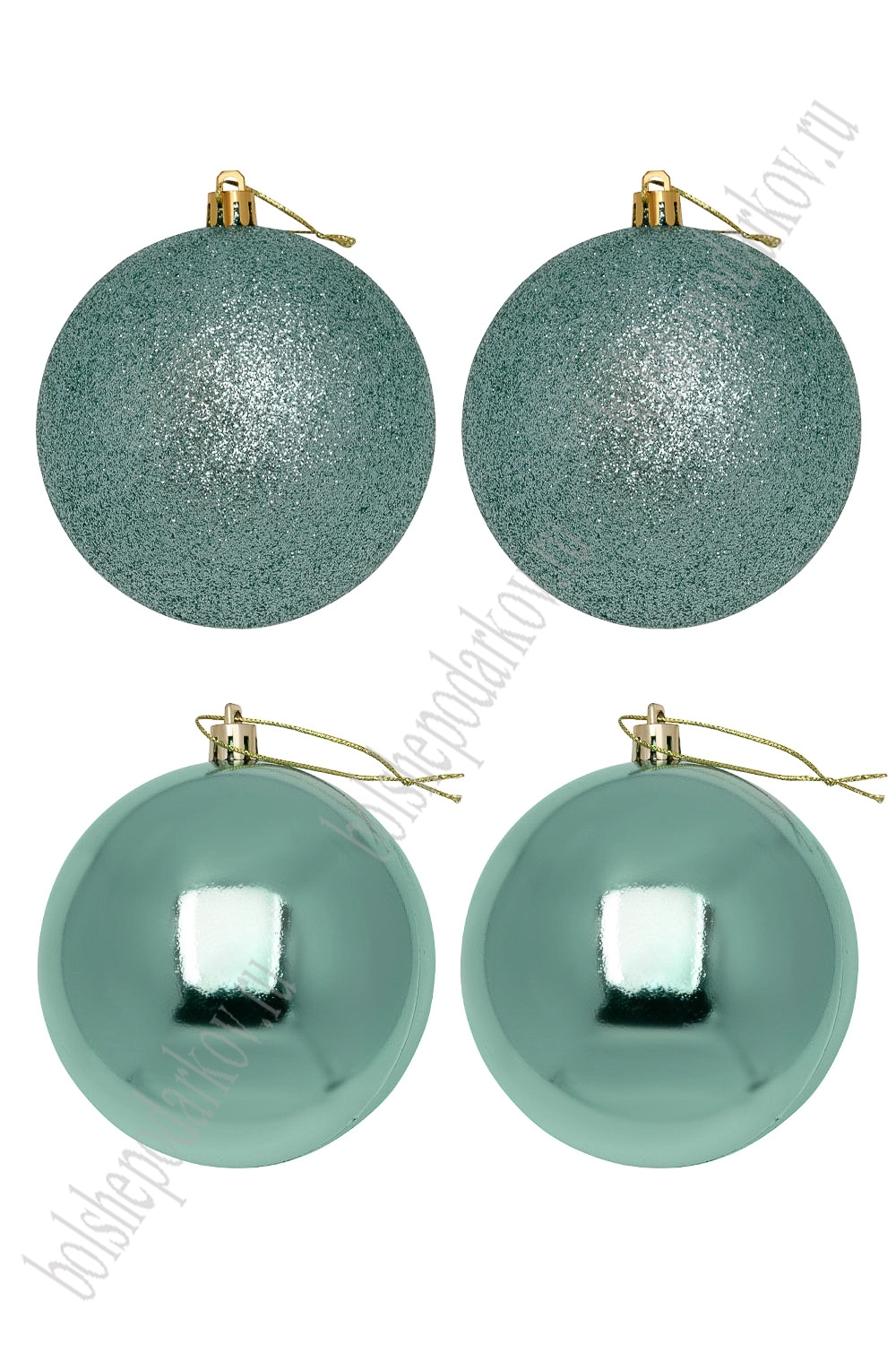 Набор новогодних шаров 10 см (4 шт) SF-8010, аквамариновый