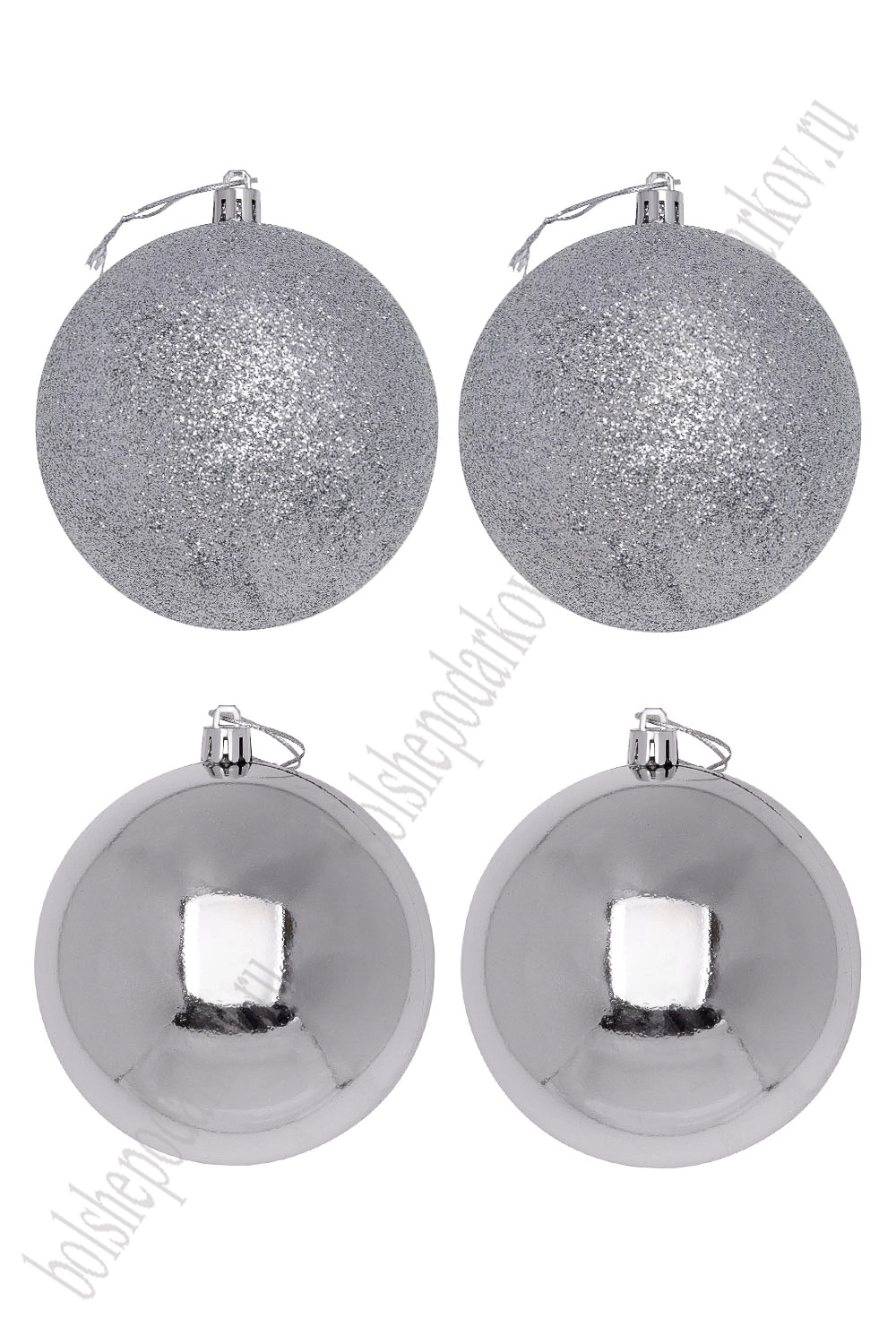 Набор новогодних шаров 10 см (4 шт) SF-8010, серебро