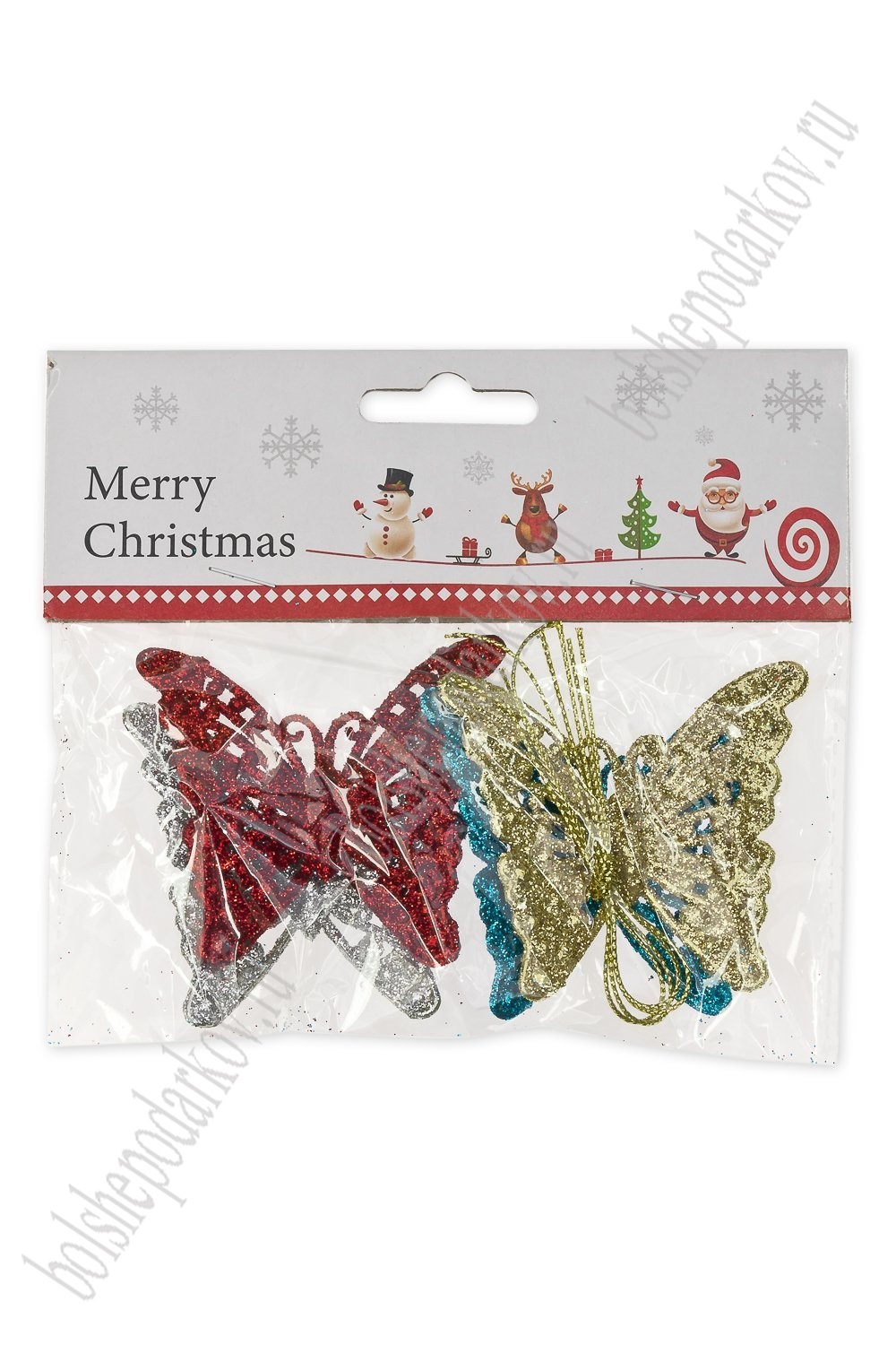 Новогодние украшения с блестками 6,5 см "Бабочки" (4 шт) SF-3510, ассорти