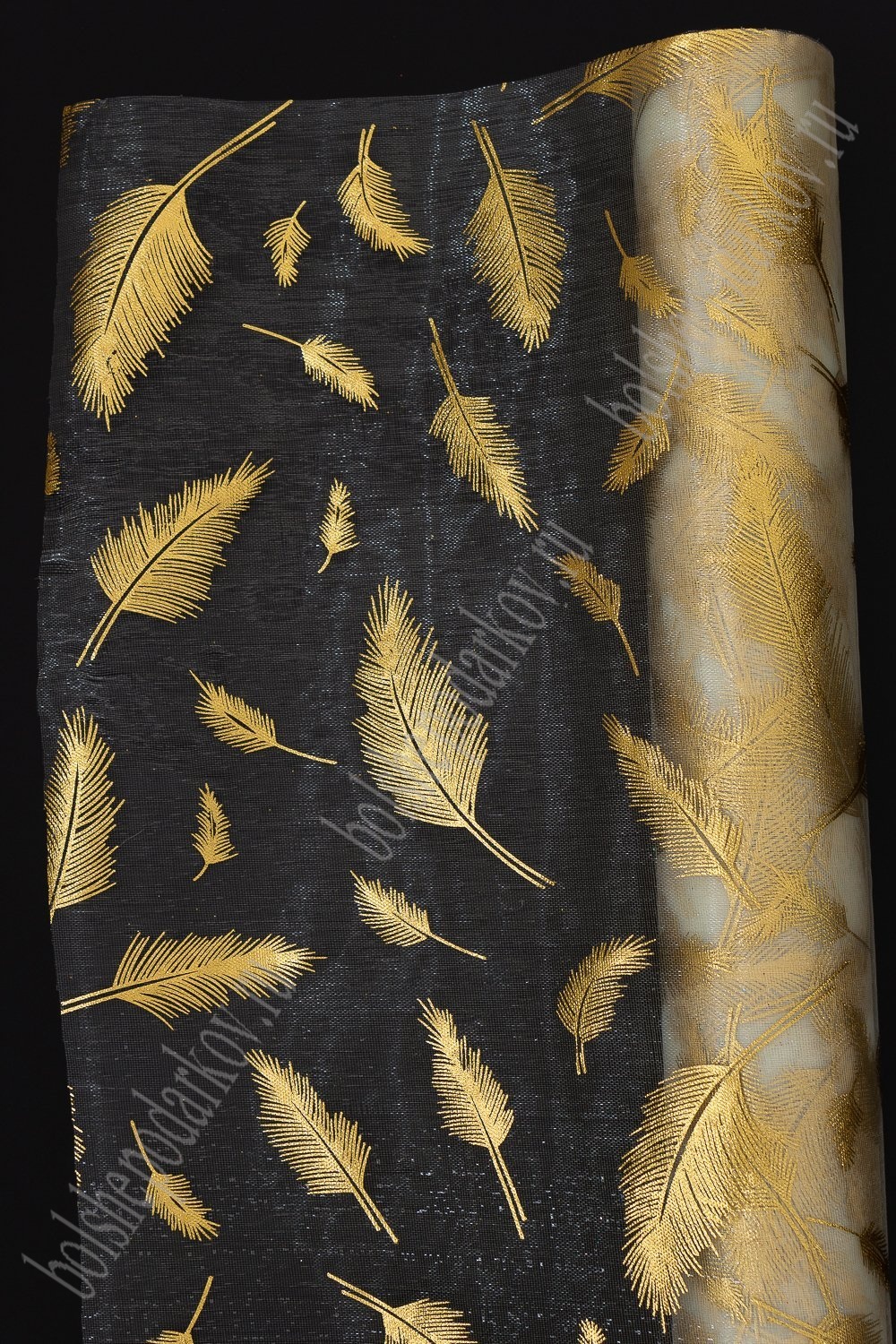 Органза 48 см*5 ярд "Перья" (SF-3133) золотой/кремовый