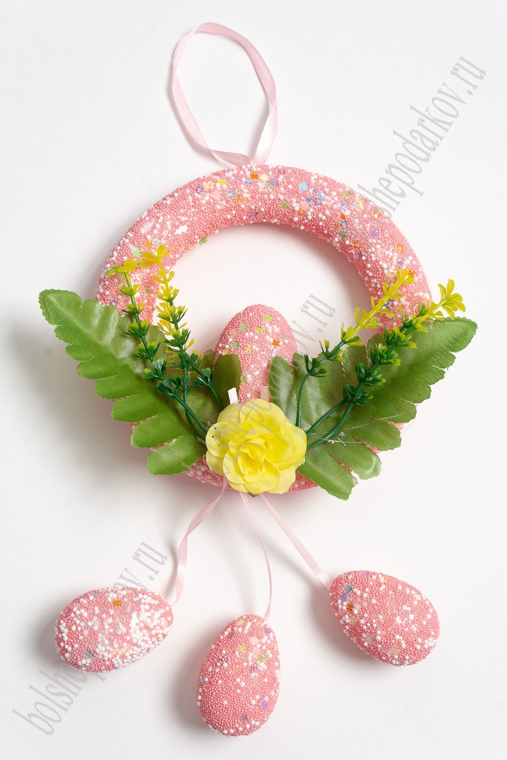 Пасхальный декор "Венок" 15 см (SF-5024) розовый