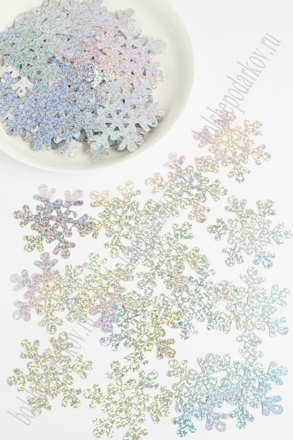 Пайетки "Снежинки крупные" 6,5 см*50 гр (SF-1138) серебро №50112