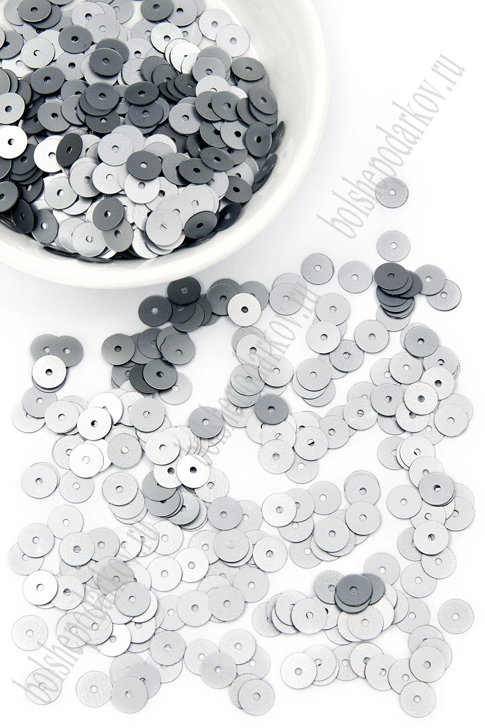 Пайетки круглые 6 мм*100 гр (SF-5756) темное серебро №1502