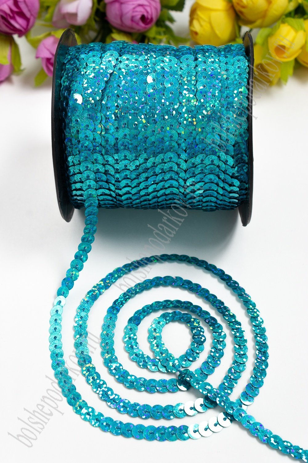 Пайетки 6 мм на нитке (голографические) SF-3068,бирюзовый