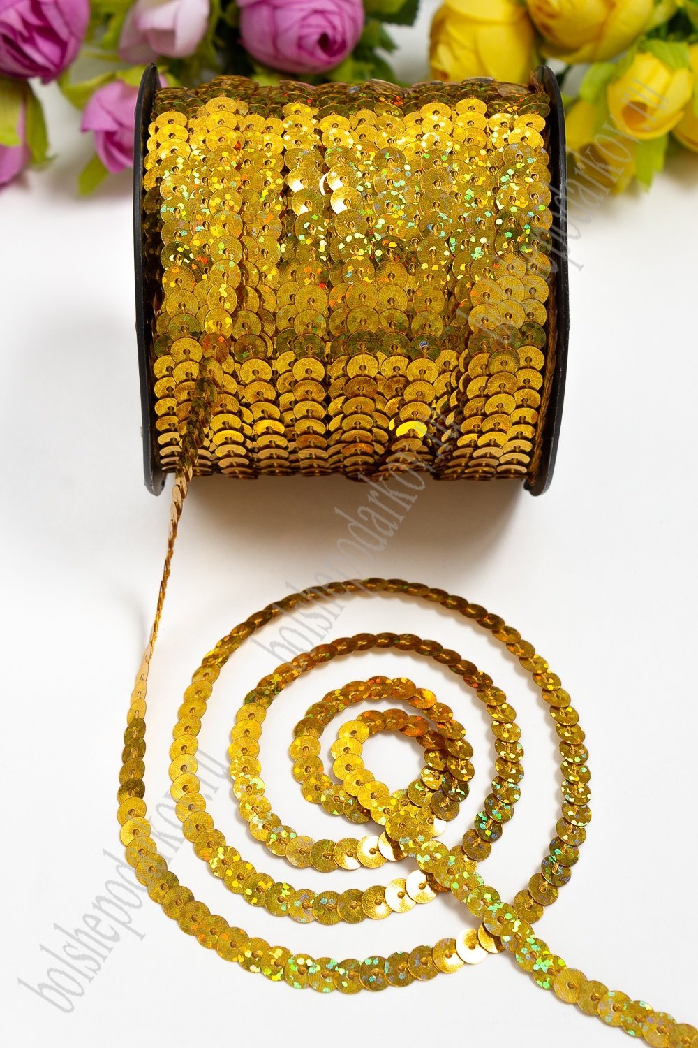 Пайетки 6 мм на нитке (голографические) SF-3068, золото №А20