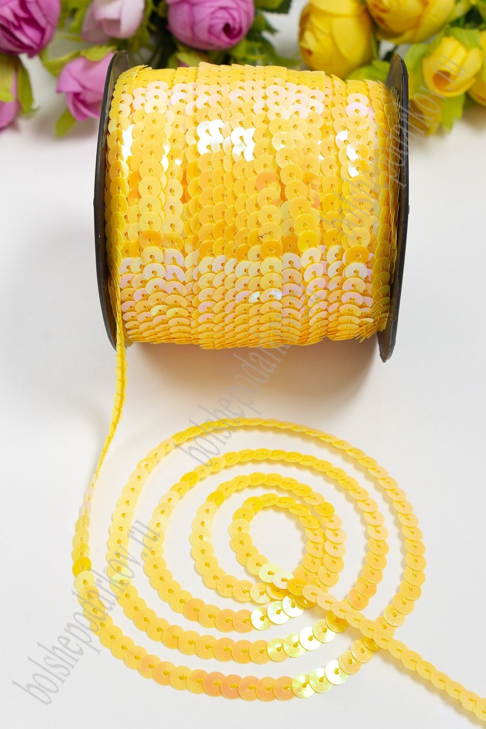 Пайетки 6 мм на нитке (хамелеон) SF-3069, желтый