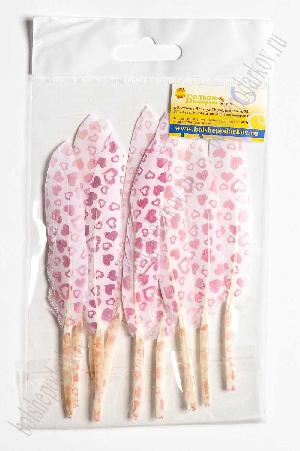Перья декоративные 15*2,2 см (10 шт) "Сердечки" красные