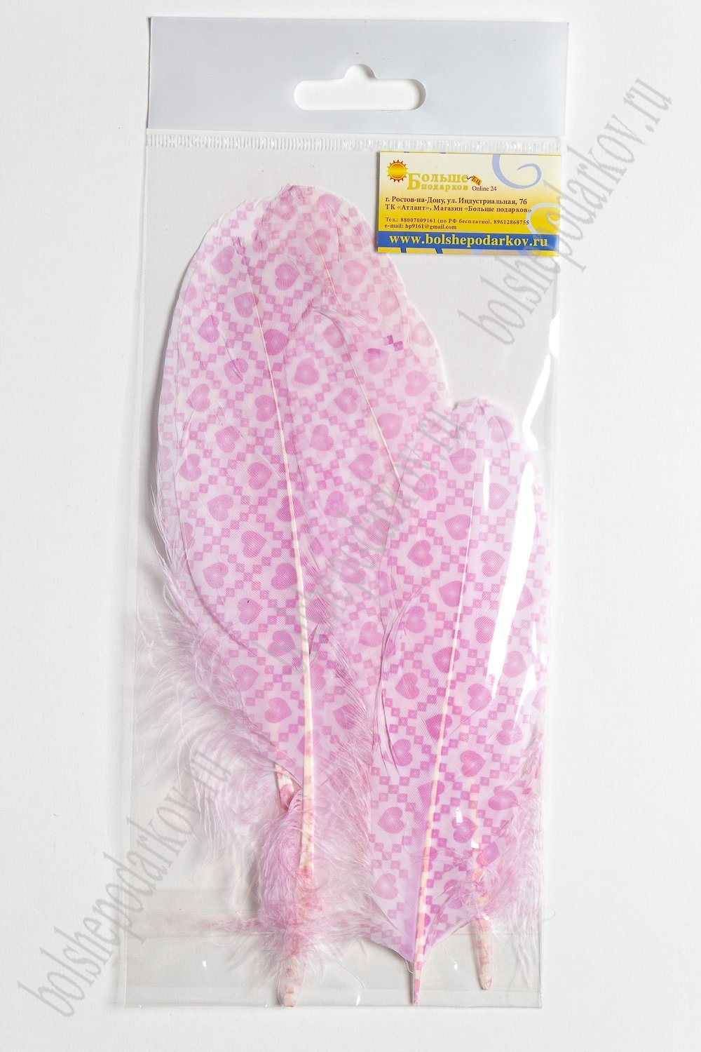 Перья декоративные 16*4,5 см (6 шт) "Сердечки" розовые