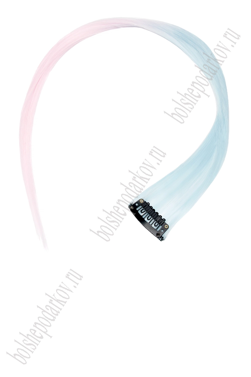 Прядь волос двухцветная на заколке (6 шт) SF-3045, голубой/св.розовый