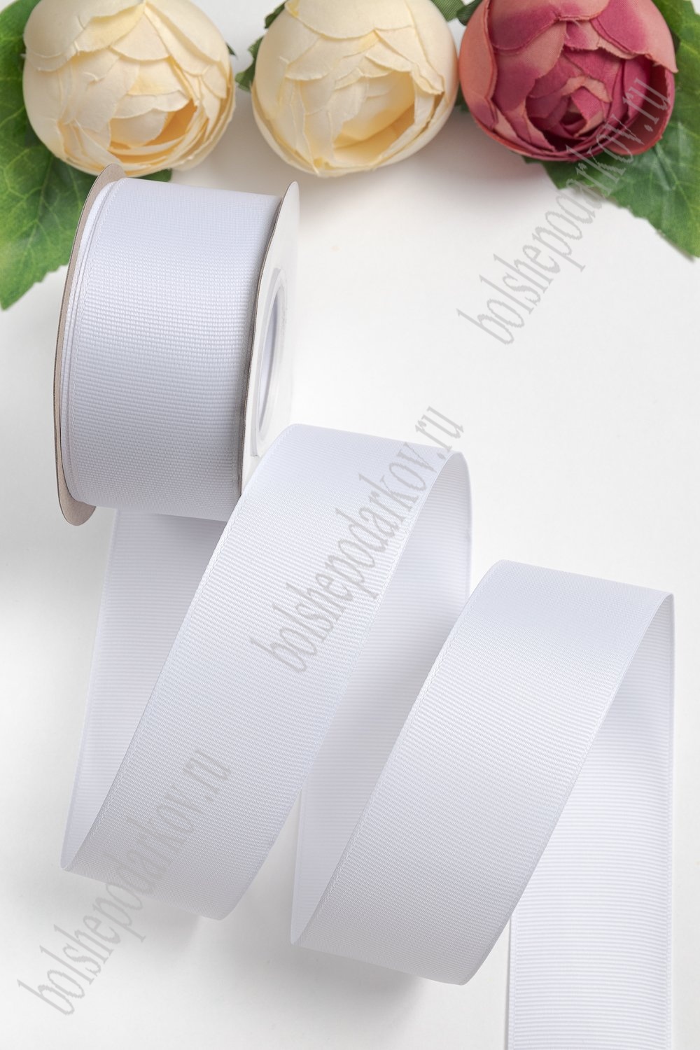 Лента репсовая 4 см*20 ярд "1 сорт" (SF-1349) белый №01