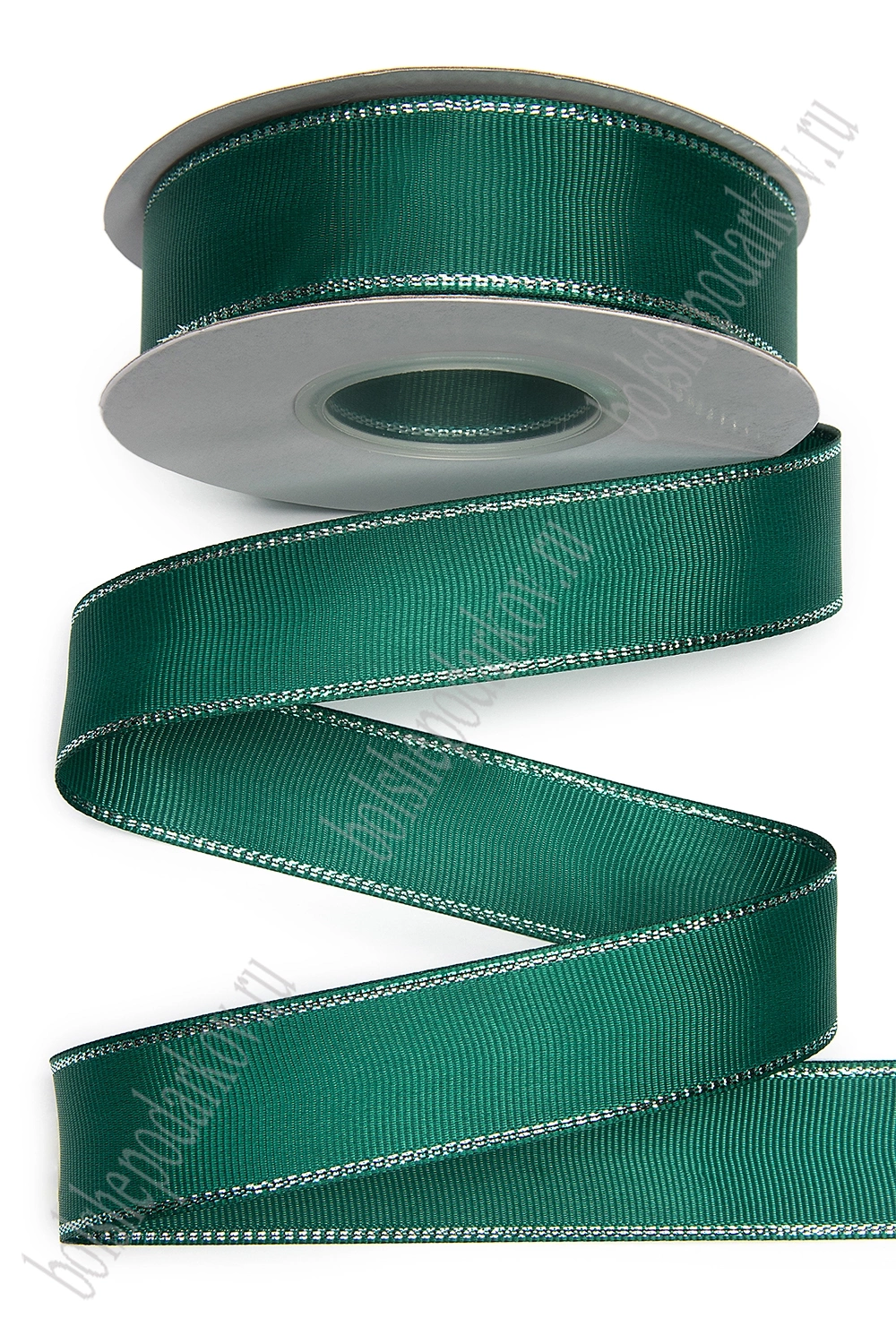 Лента репсовая с люрексом 2,5 см*20 ярд (SF-5828) темно-зеленый №49