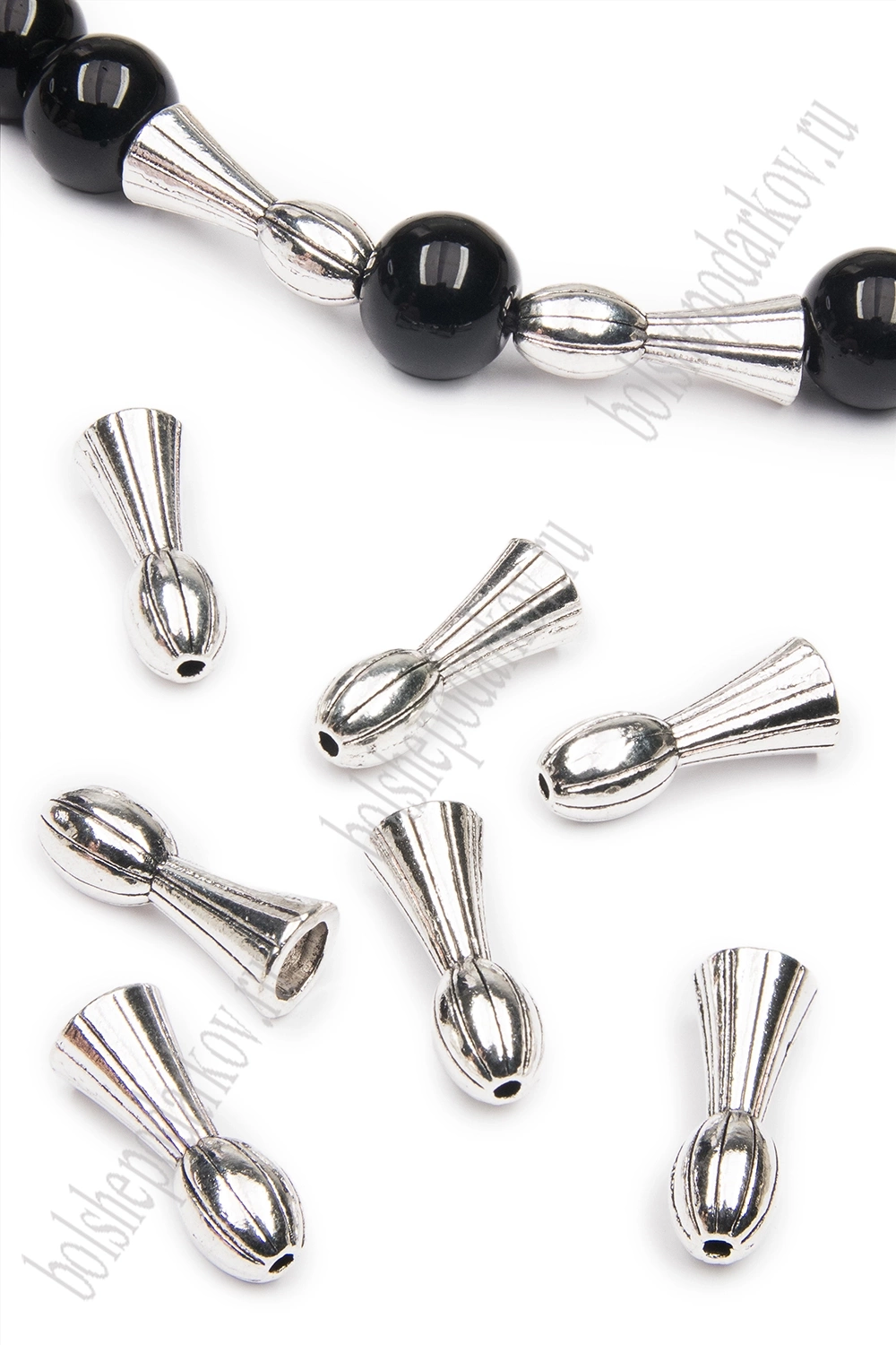 Шапочка для бусин 18*7 мм (10 шт) SF-7748, серебро