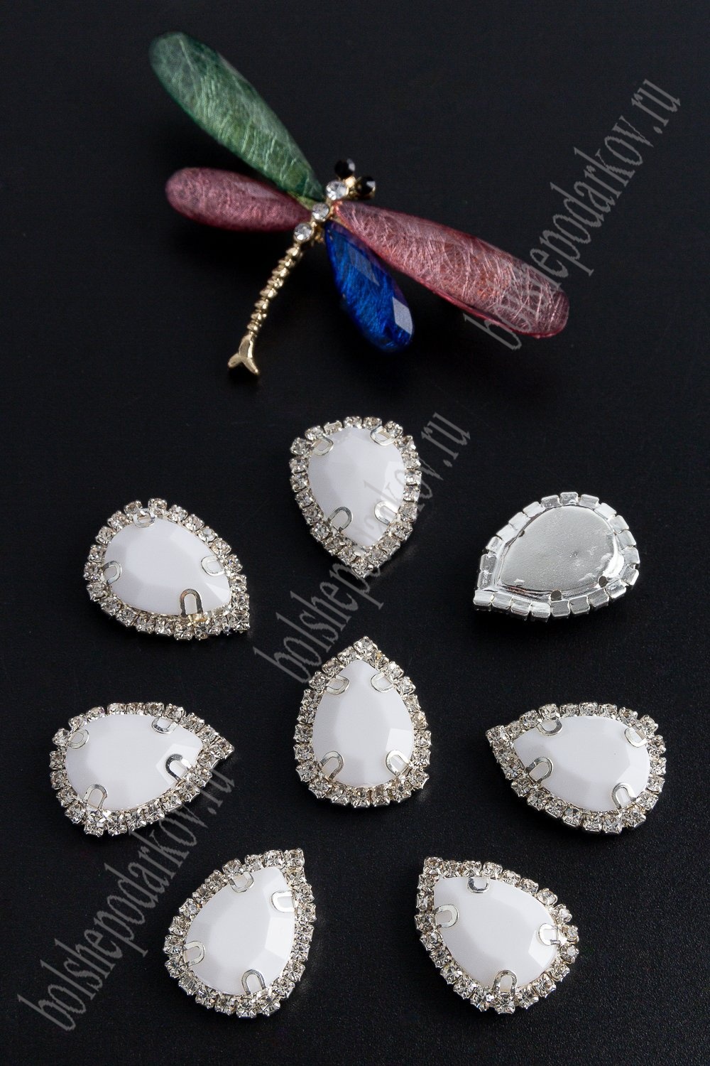 Стразы пришивные в серебряной оправе 17*23 мм "Капля" (5 шт) SF-2052, белый №26