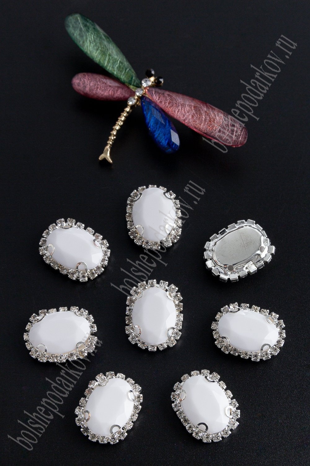 Стразы пришивные в серебряной оправе 17*22 мм "Овал" (5 шт) SF-1425, белый №26