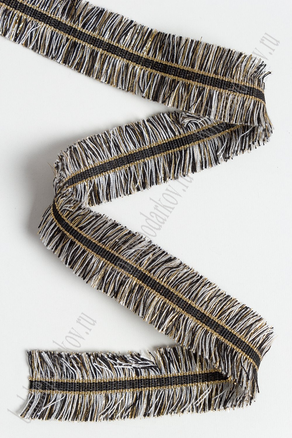 Тесьма отделочная 3 см*5 ярд "Бахрома с люрексом" (SF-2461) черный/белый