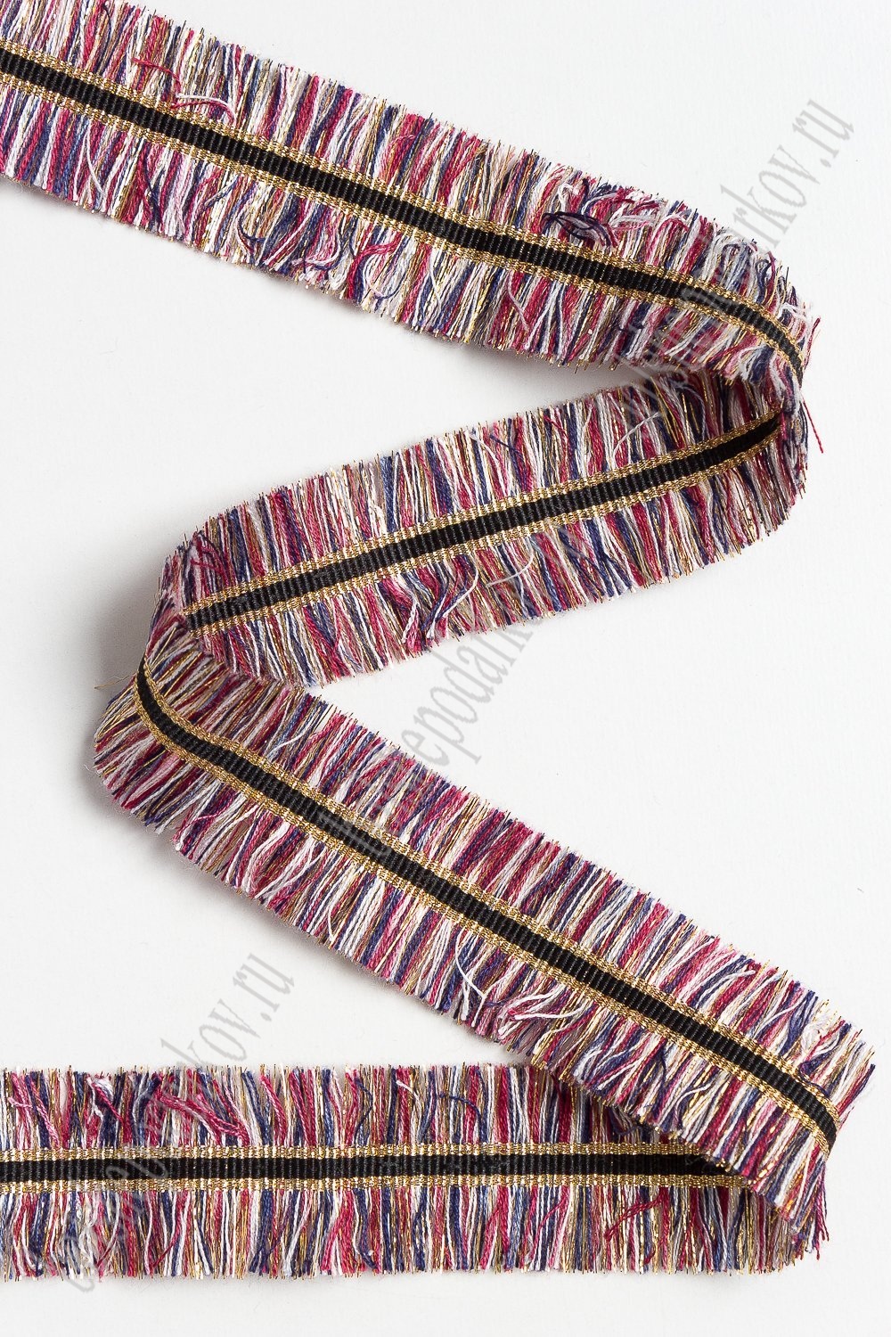 Тесьма отделочная 3 см*5 ярд "Бахрома с люрексом" (SF-2461) бордовый/синий