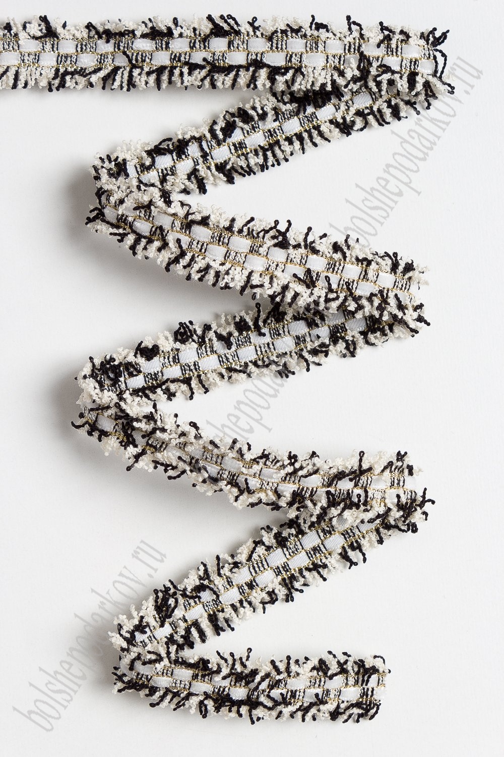 Тесьма отделочная 2 см*5 ярд "Бахрома с бархатом" (SF-2463) белый